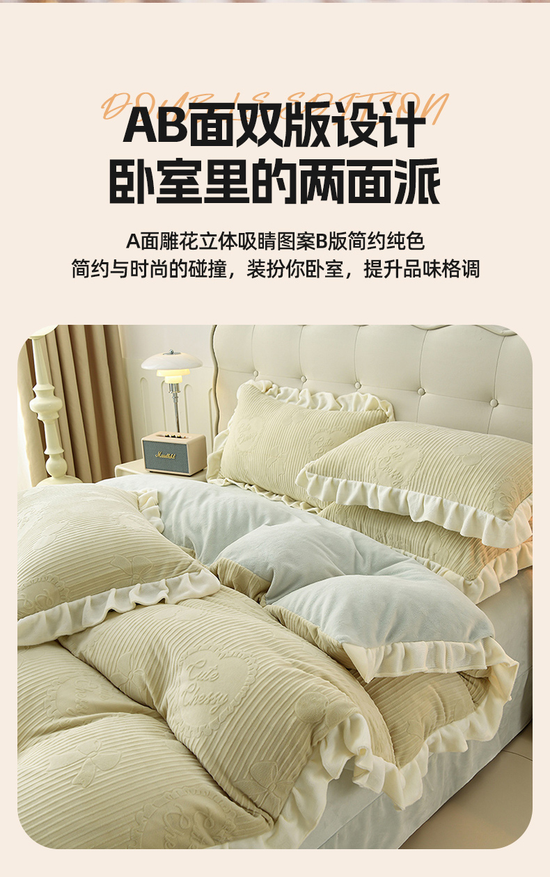 (总)千嘻汇家纺 2025新款8.5斤韩版雕花牛奶绒四件套,甜蜜蜜粉色,甜蜜蜜蓝色,甜蜜蜜米色,甜蜜蜜青色,甜蜜蜜紫色
