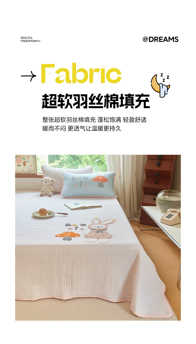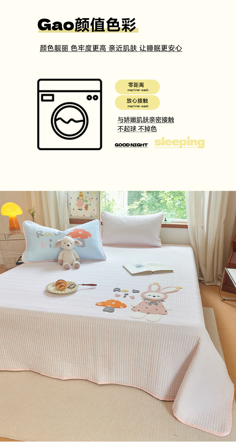 当前位置: 91家纺网 > 商品网购 > 床上用品 > 床盖 > 鑫喜莱家纺 2025新款云朵棉毛巾绣床盖三件套 蘑菇兔