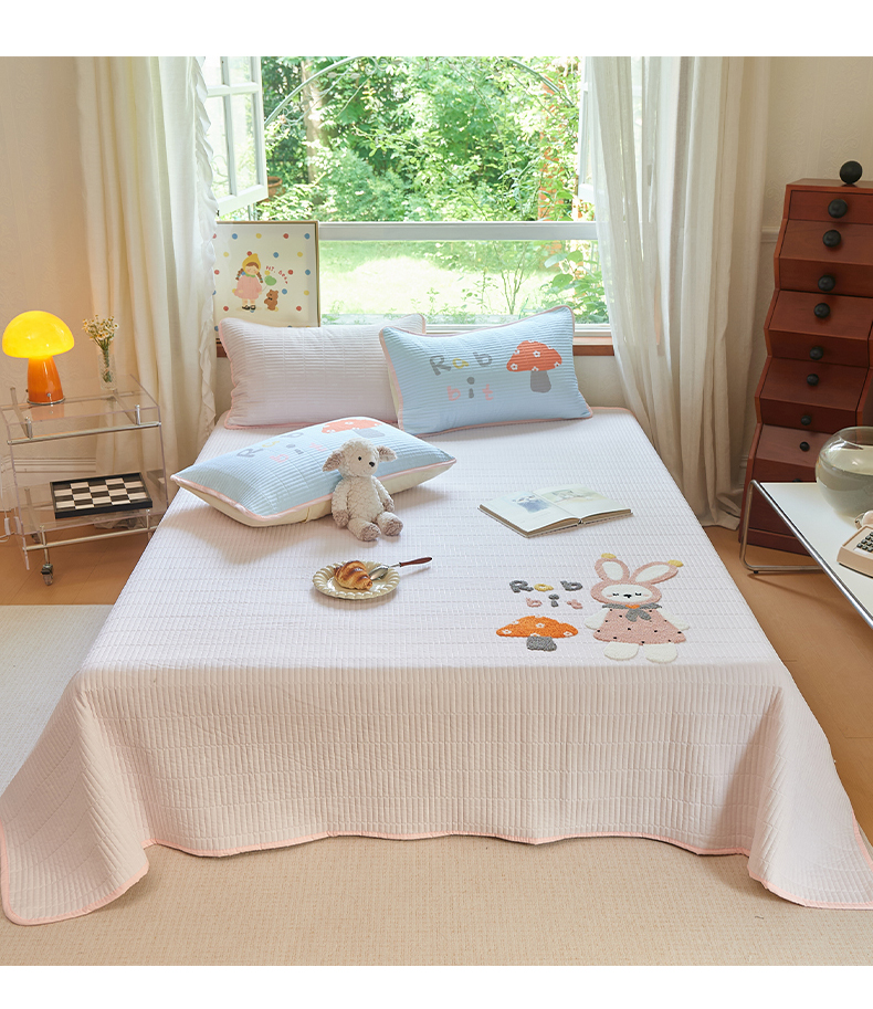 鑫喜莱家纺 2025新款云朵棉毛巾绣床盖三件套 蘑菇兔
