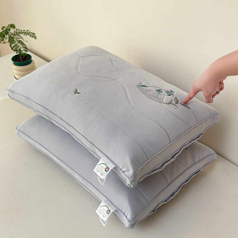 (总)永乐枕芯 2025新款刺绣款高档单人枕头枕芯亲肤透气单人舒睡保健枕睡眠不变形,粉玉,青柠绿,雅韵灰,栀子白,组合图
