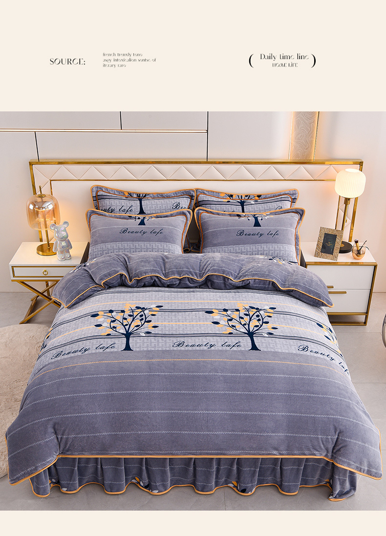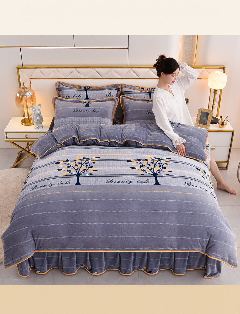 2025新款牛奶绒印花床裙四件套系列-四件套 发财树