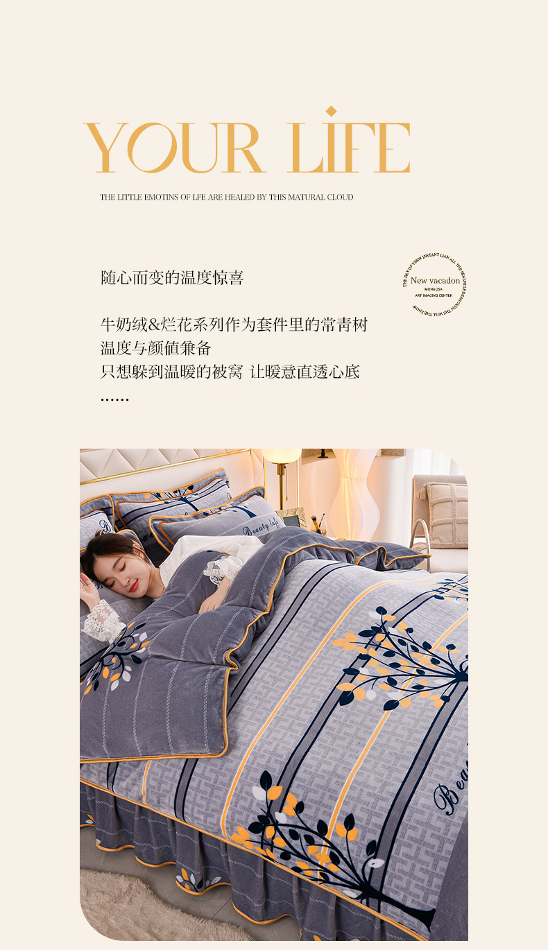 (总)慕婷家纺 2025新款牛奶绒印花四件套,繁花似锦,北欧风情,春意盎然,迪迪龙,发财树,粉色佳人,国色天香,花香四溢,水墨江南,金香满园,镜花水月,孔雀翎,蓝大格,梦羽,眯眯眼,轻奢生活,三生有幸,时尚生活,一叶倾心,银杏叶,优雅芬芳,钟爱一生,紫韵嫣然,爱心箭,熊猫抱竹