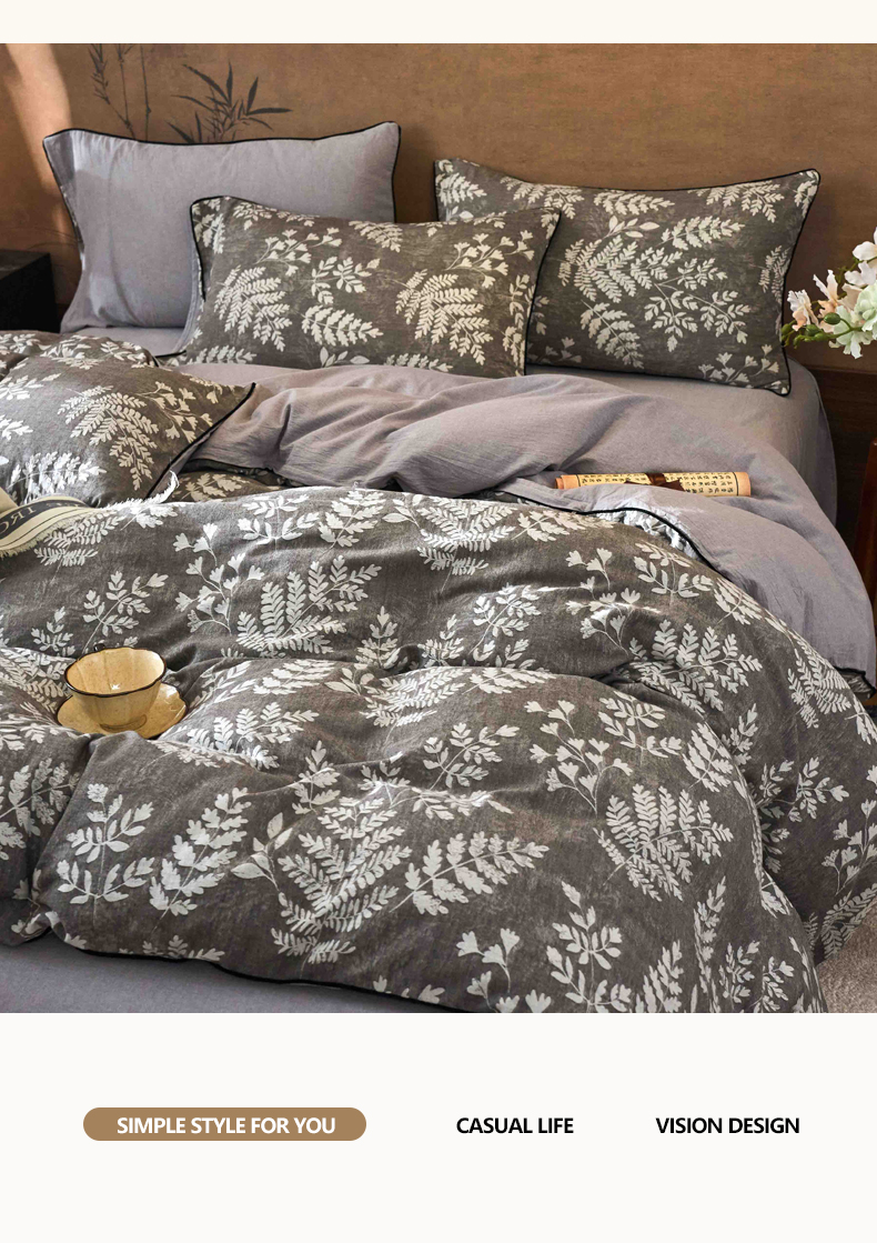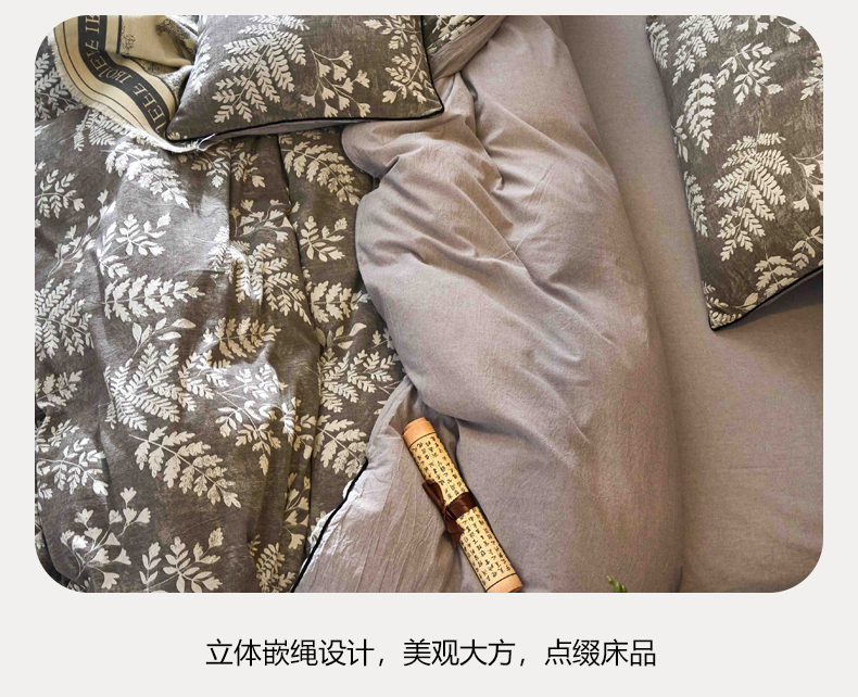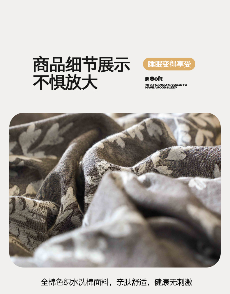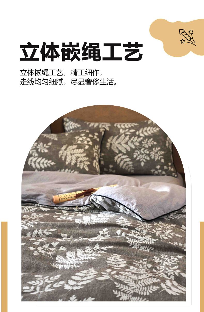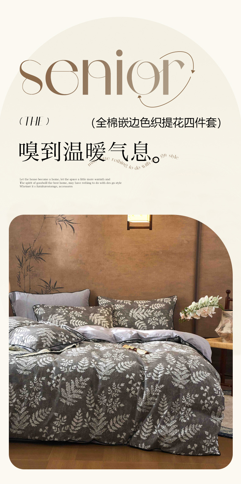 当前位置: 91家纺网 > 商品网购 > 床品套件 > 四件套 > 全棉普通四件套 > 兰紫橙家纺 2025新款全棉纯棉嵌边色织提花四件套 浅叶-咖啡