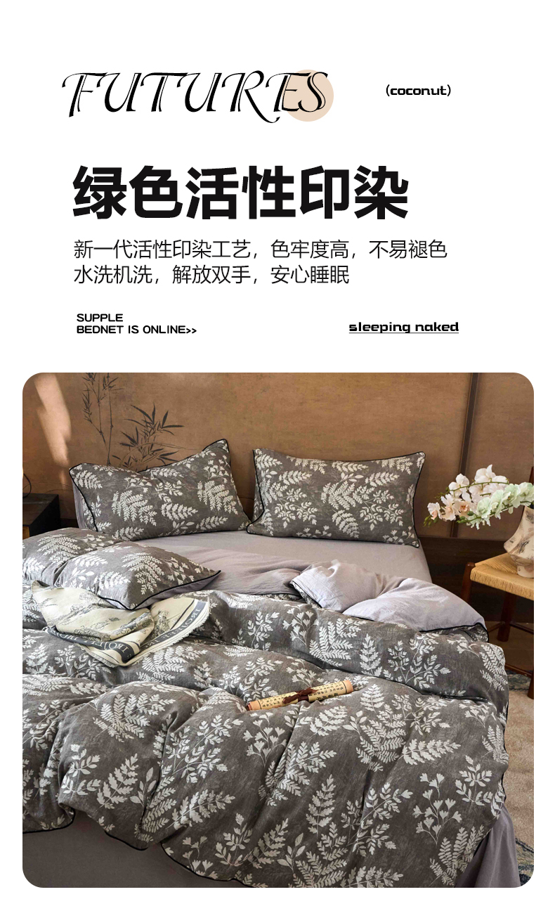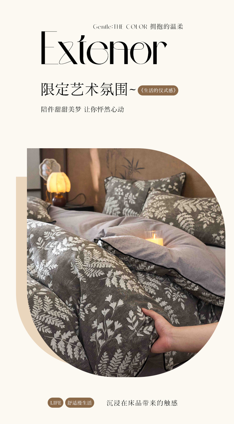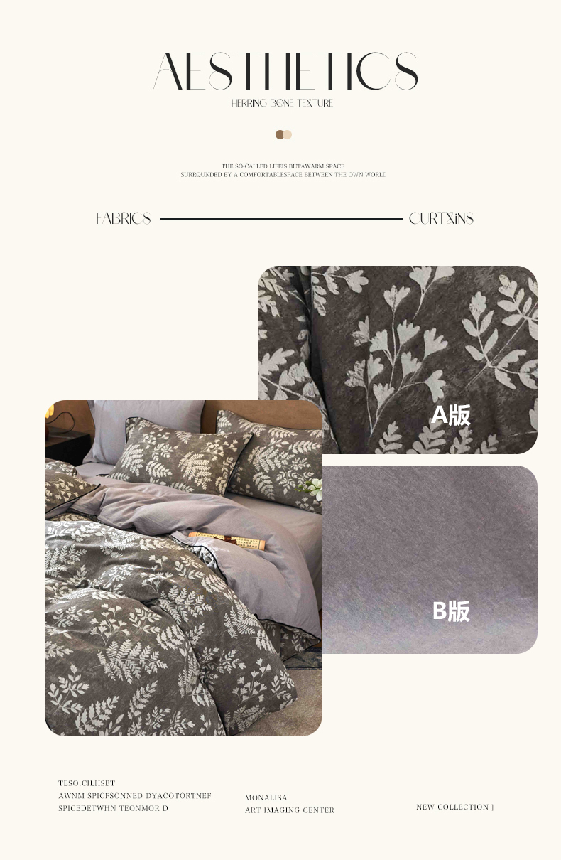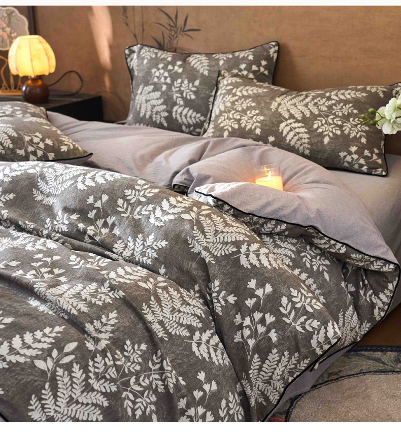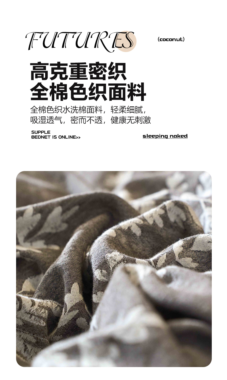 当前位置: 91家纺网 > 商品网购 > 床品套件 > 四件套 > 全棉普通四件套 > 兰紫橙家纺 2025新款全棉纯棉嵌边色织提花四件套 浅叶-咖啡