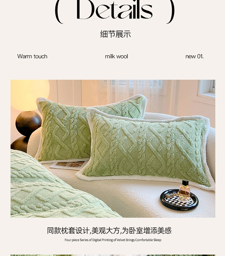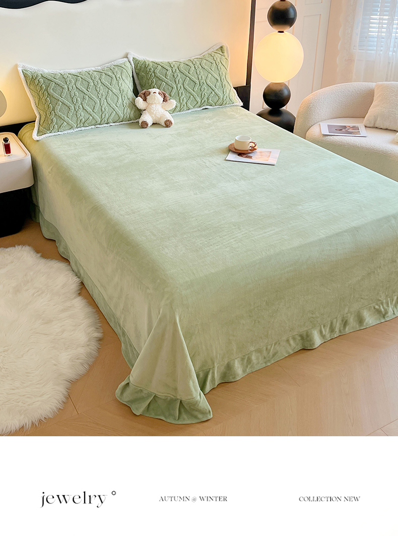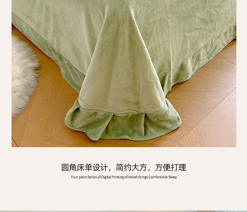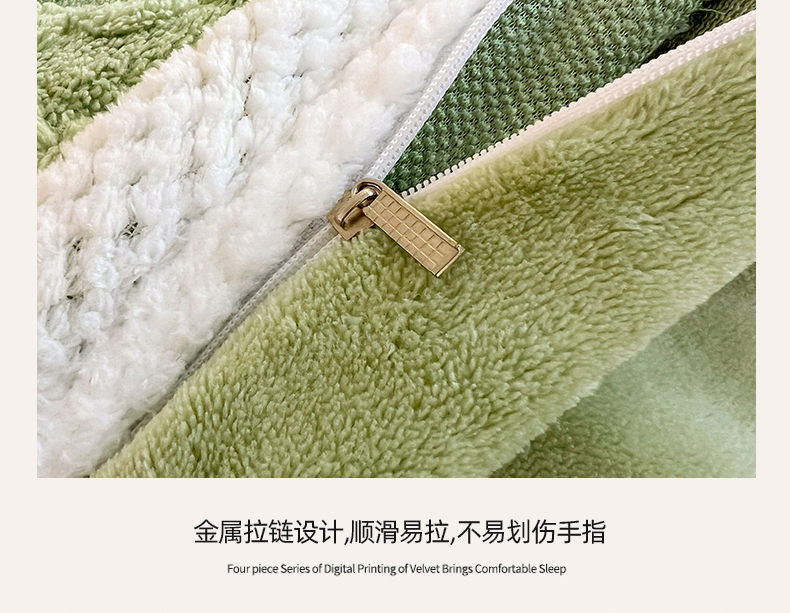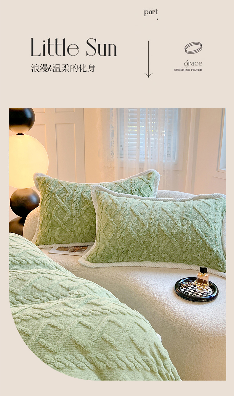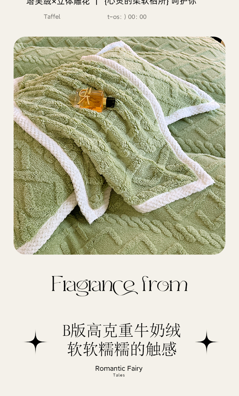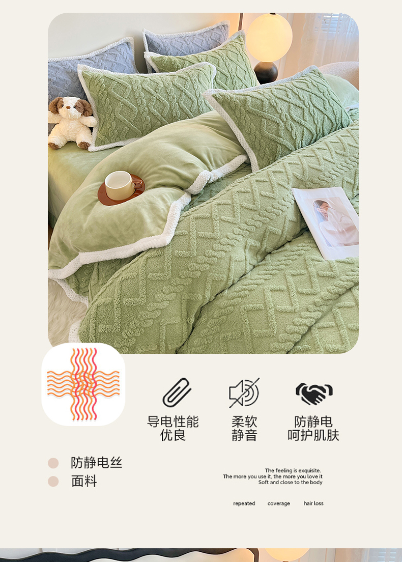 商品名称:悦织湾家纺 轻奢塔芙绒菱形格纯色牛奶绒四件套2025新款床上用品加厚保暖4件套 曼巴绿