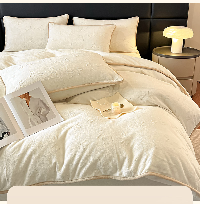 当前位置: 91家纺网 > 商品网购 > 床品套件 > 四件套 > 牛奶绒四件套 > 金阳光家纺 2025新款A类立体雕花蝴蝶结包边款牛奶绒四件套-舞蝶系列 舞蝶-蝶蓝