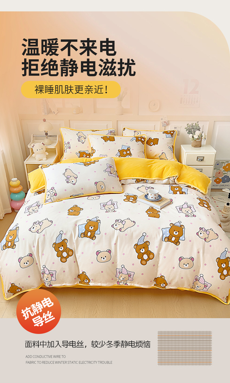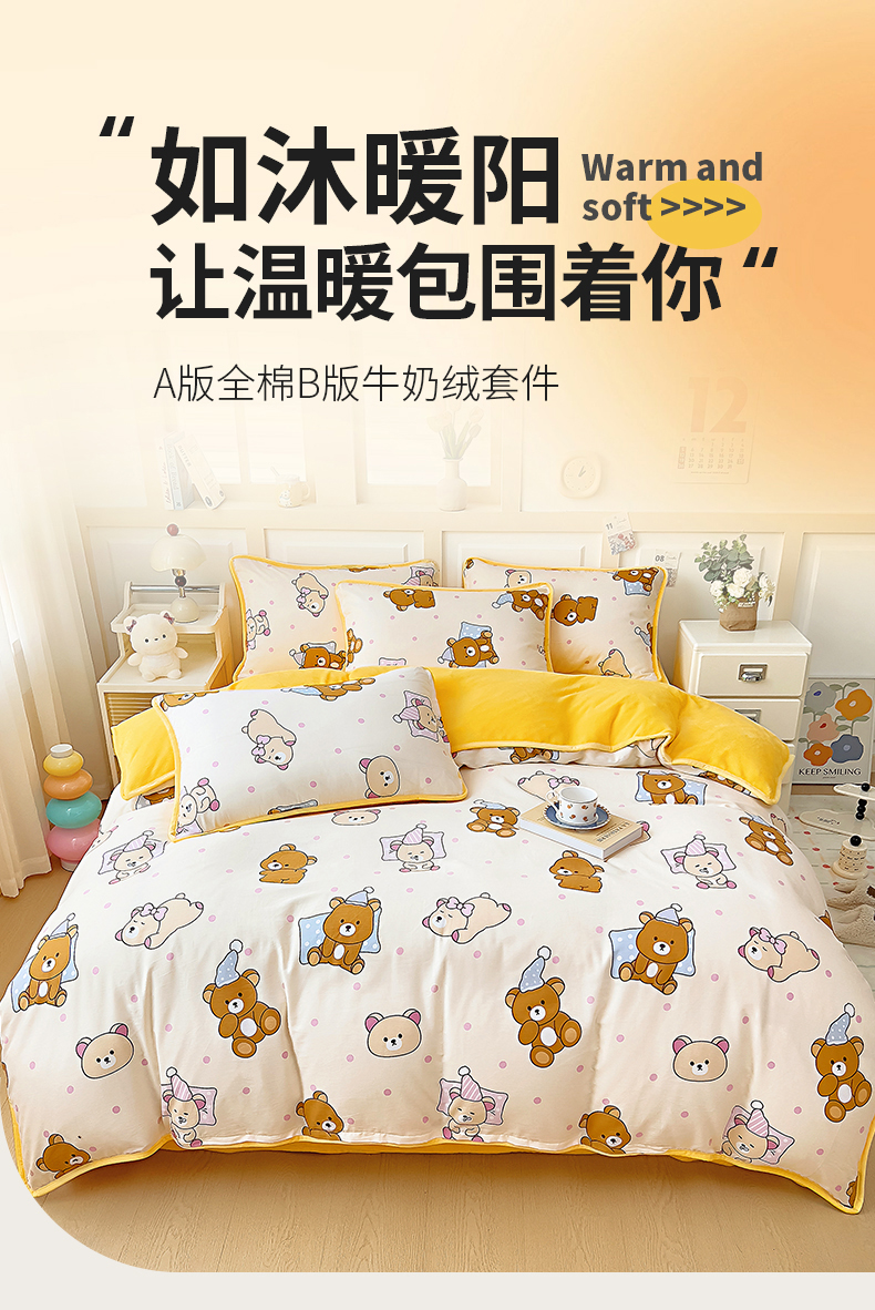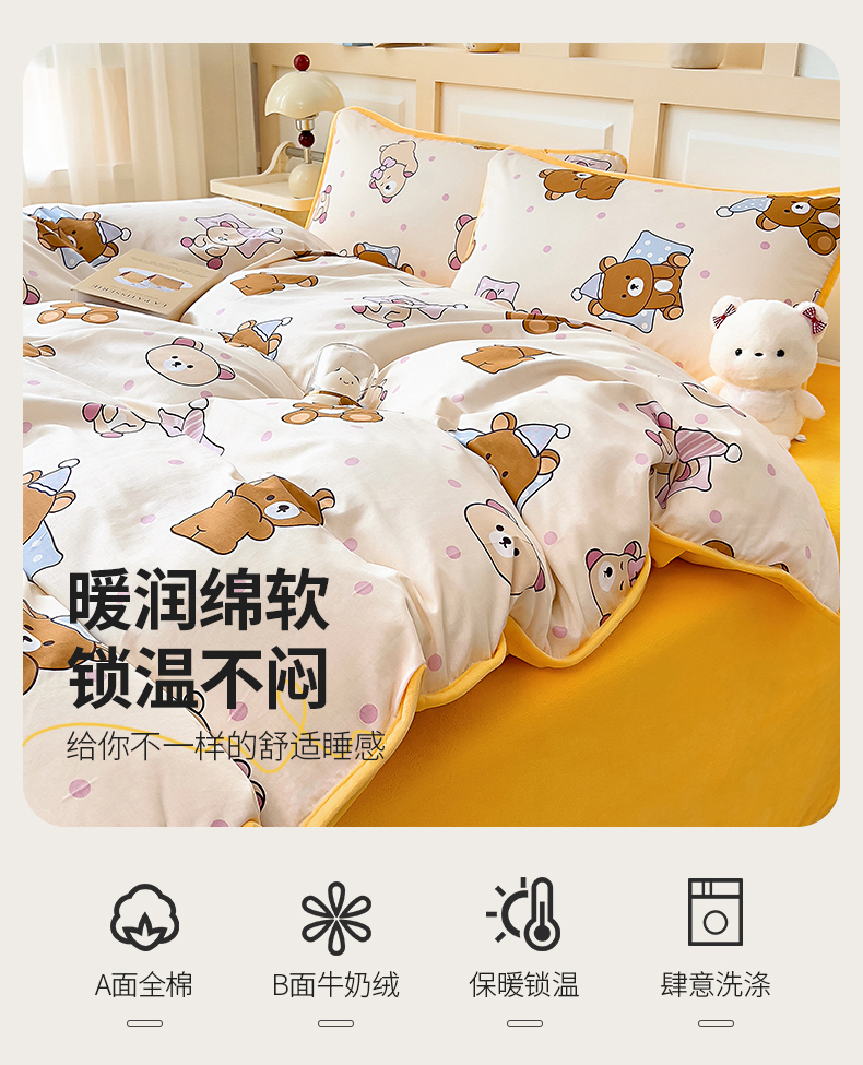 当前位置: 91家纺网 > 商品网购 > 床品套件 > 四件套 > 牛奶绒四件套 > 琪琪阁家纺 2025新款A类全棉纯棉加牛奶绒包边款单被套四件套 枕边语