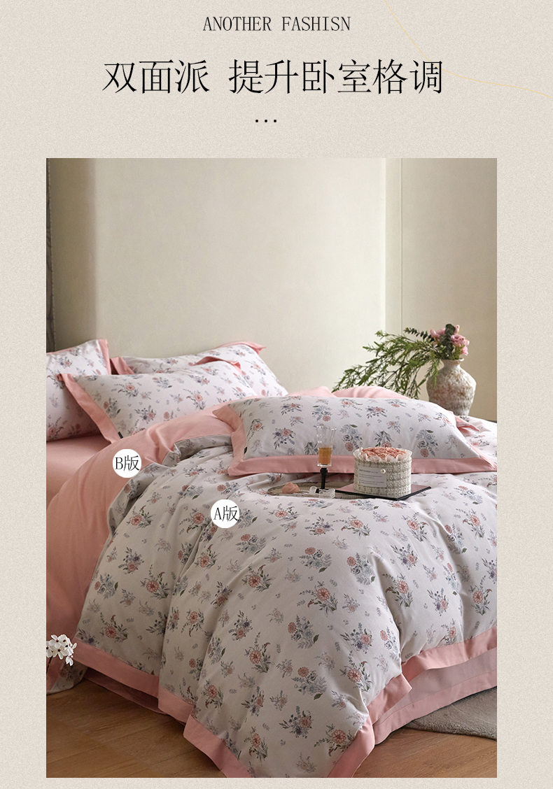 (总)薏思家纺 2025新款全棉纯棉数码印花双宽边磨毛四件套-繁花,春光郁金粉,花茉里-米白,克洛伊粉,克洛伊灰,暮光幽紫,蔷薇之恋,恬觅,温婉粉,舞 绿,心柔-绿,叶伴花香