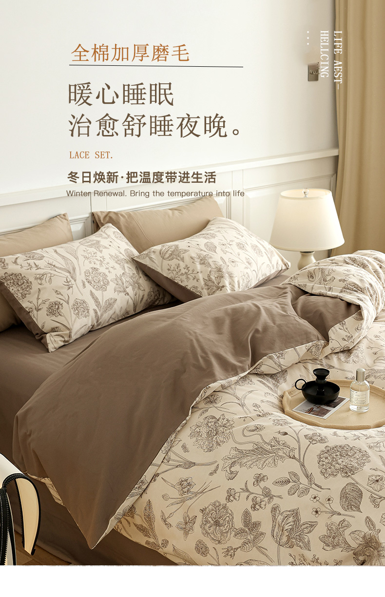 (总)绫韵家纺 2025秋冬新品生态全棉磨毛冬季纯棉磨毛四件套系列,碧秋灰,尔樱,花语遥香-咖,明玖米,浅汐米,拾秋兰,欣恬灰,语芊咖