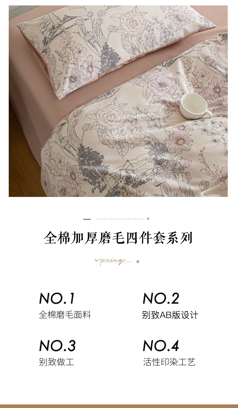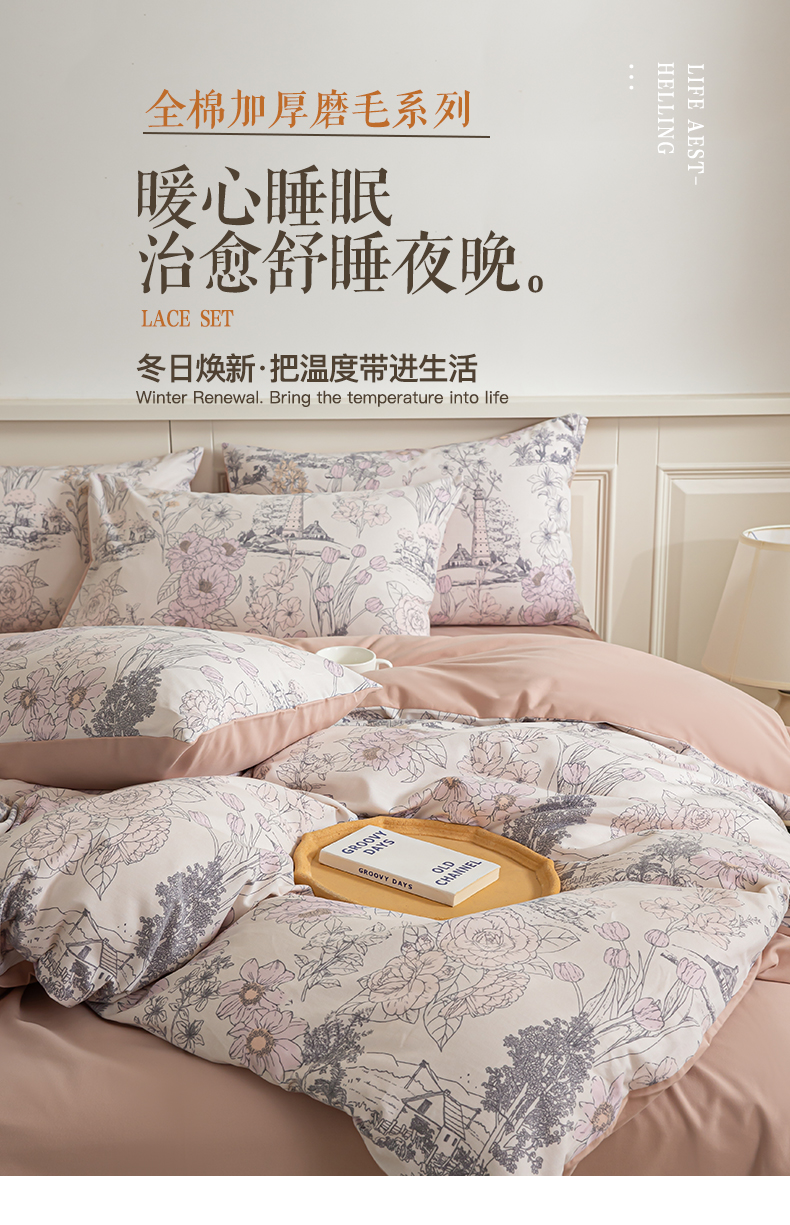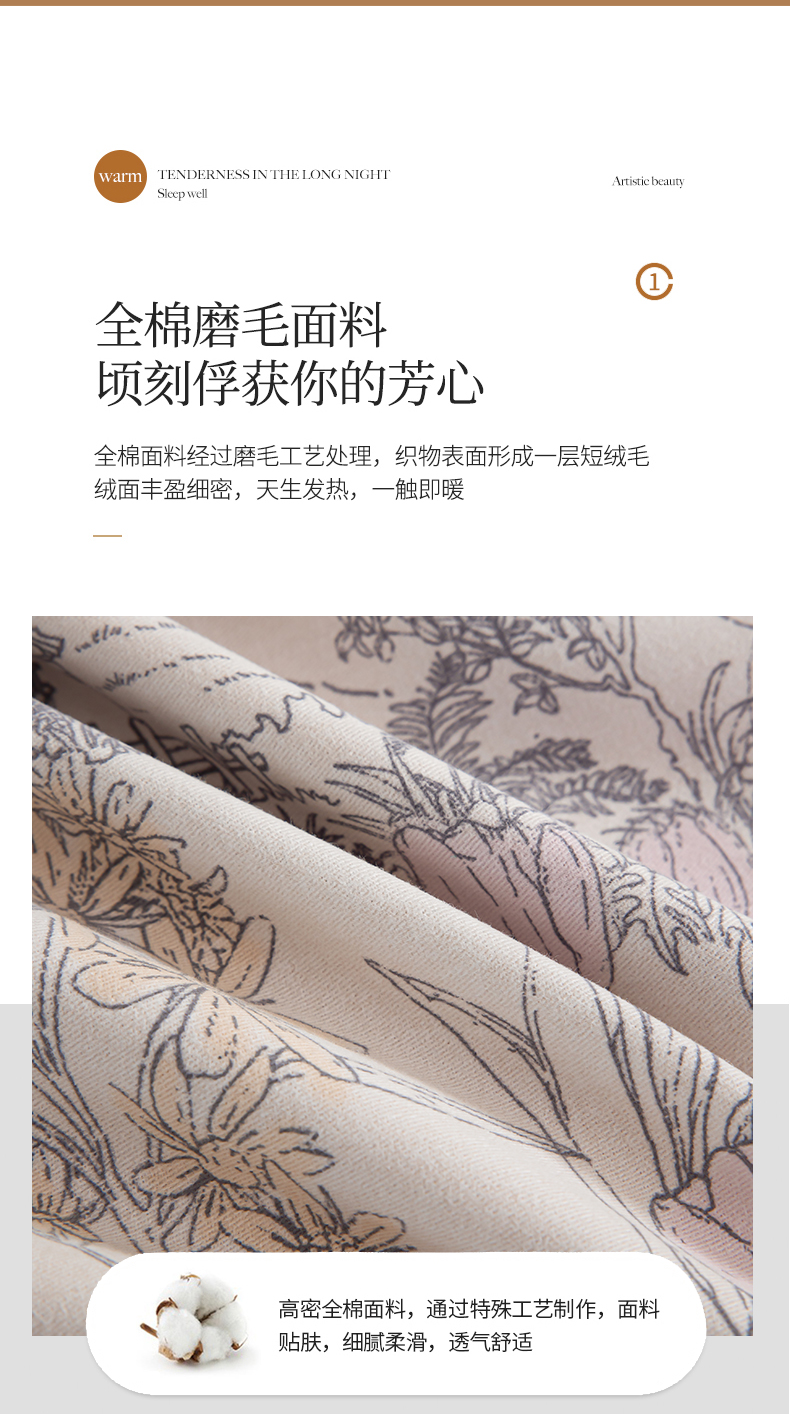 商品名称:绫韵家纺 2025秋冬新款印花全棉磨毛冬季加厚纯棉磨毛三件套四件套系列 美丽人生