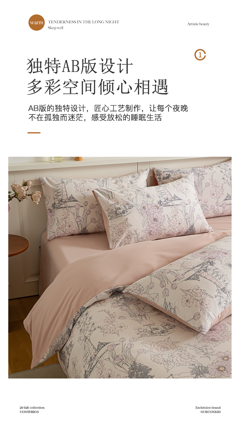 绫韵家纺 2025秋冬新款印花全棉磨毛冬季加厚纯棉磨毛三件套四件套系列 美丽人生