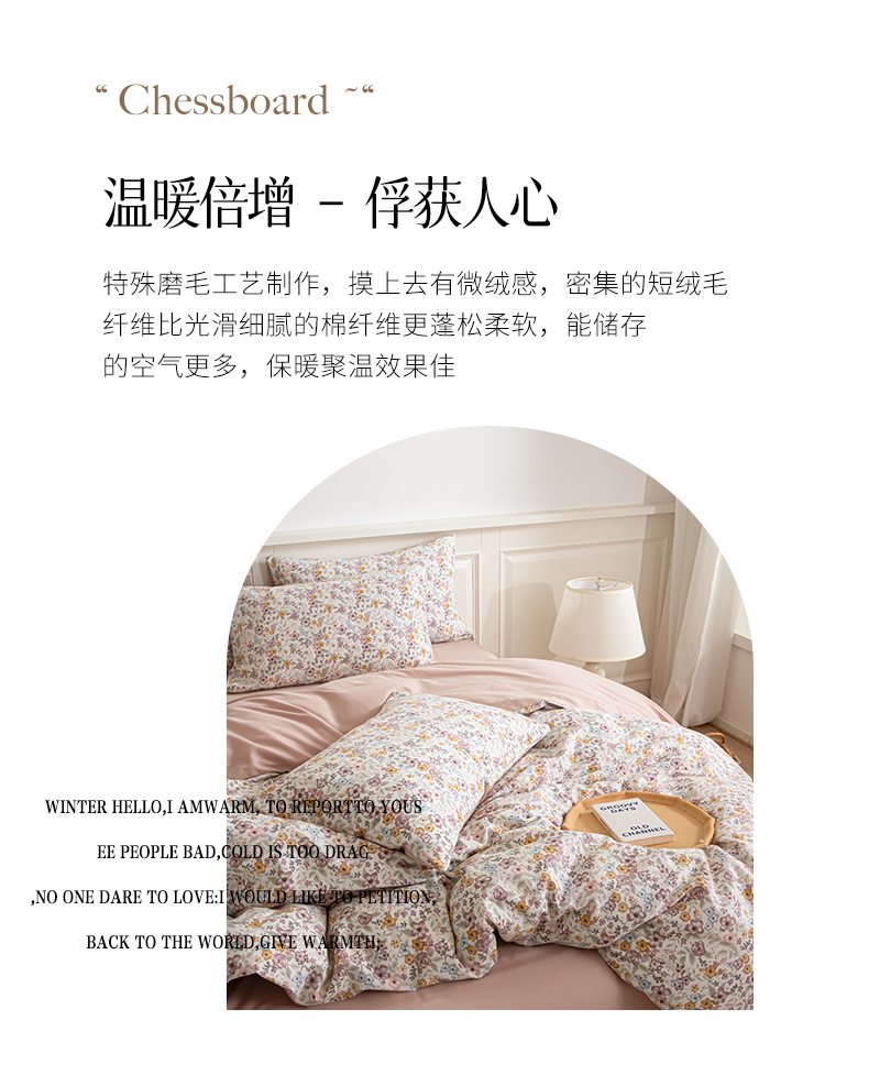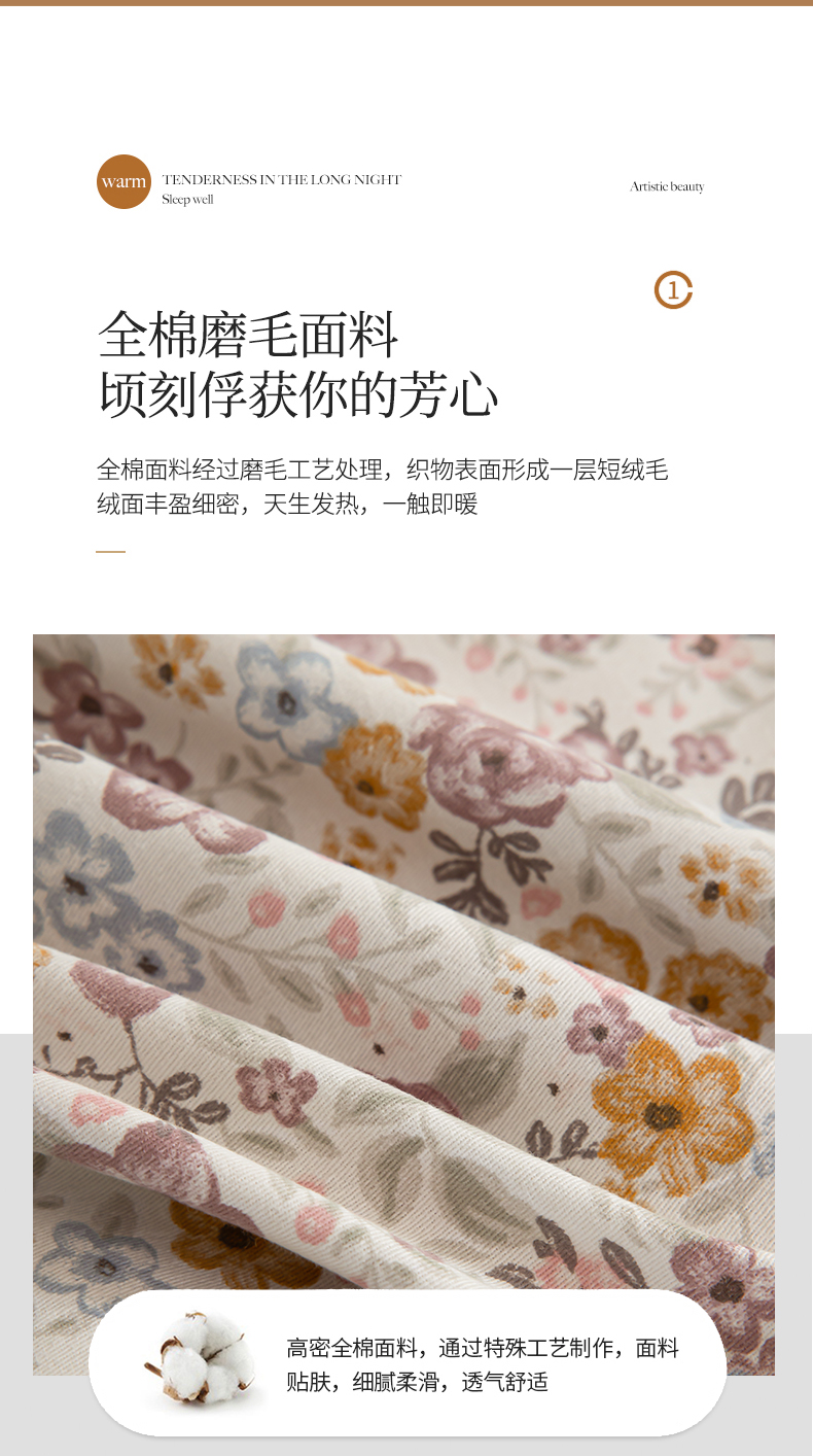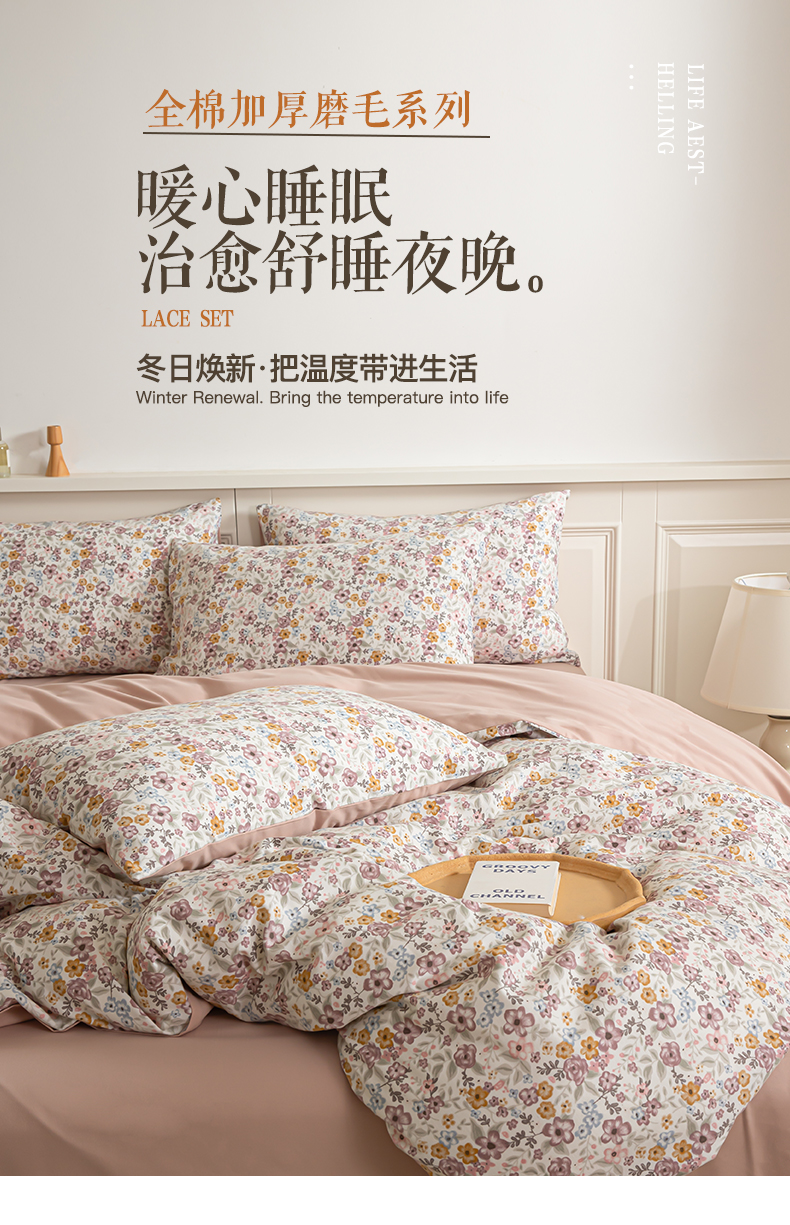 商品名称:绫韵家纺 2025秋冬新款印花全棉磨毛冬季加厚纯棉磨毛三件套四件套系列 微微安