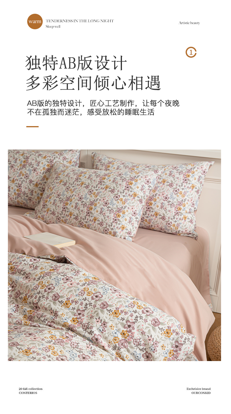 (总)绫韵家纺 2025秋冬新品生态全棉磨毛冬季纯棉磨毛四件套系列,碧秋灰,尔樱,花语遥香-咖,明玖米,浅汐米,拾秋兰,欣恬灰,语芊咖