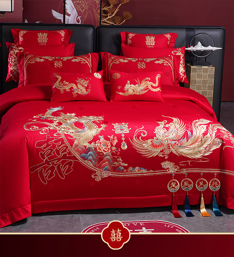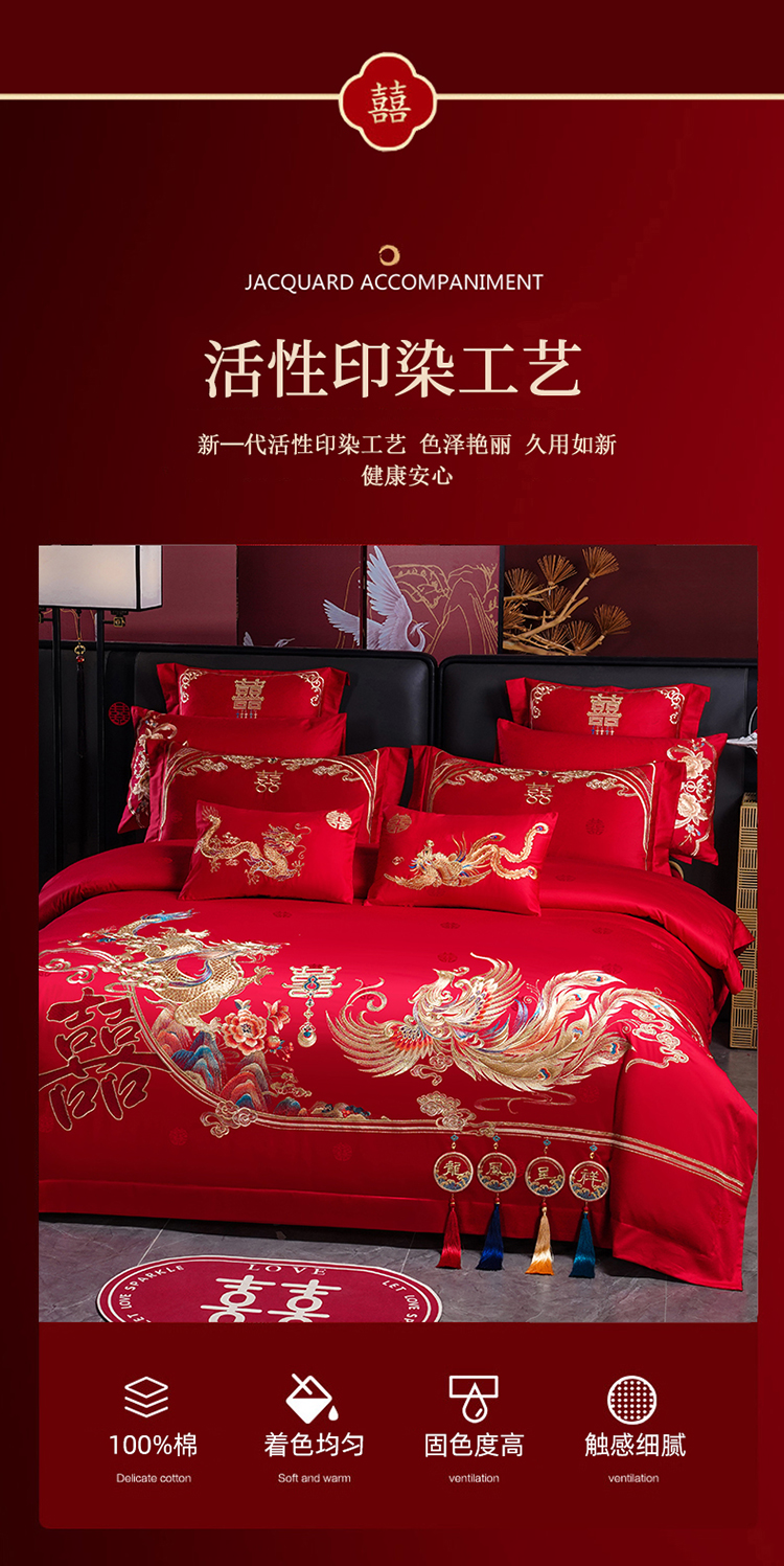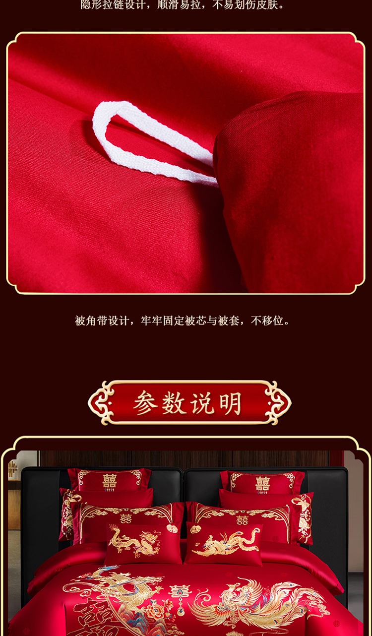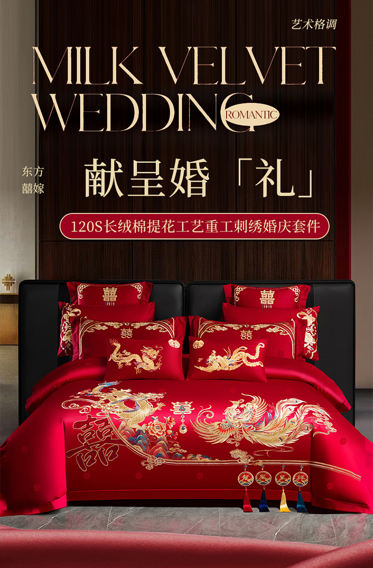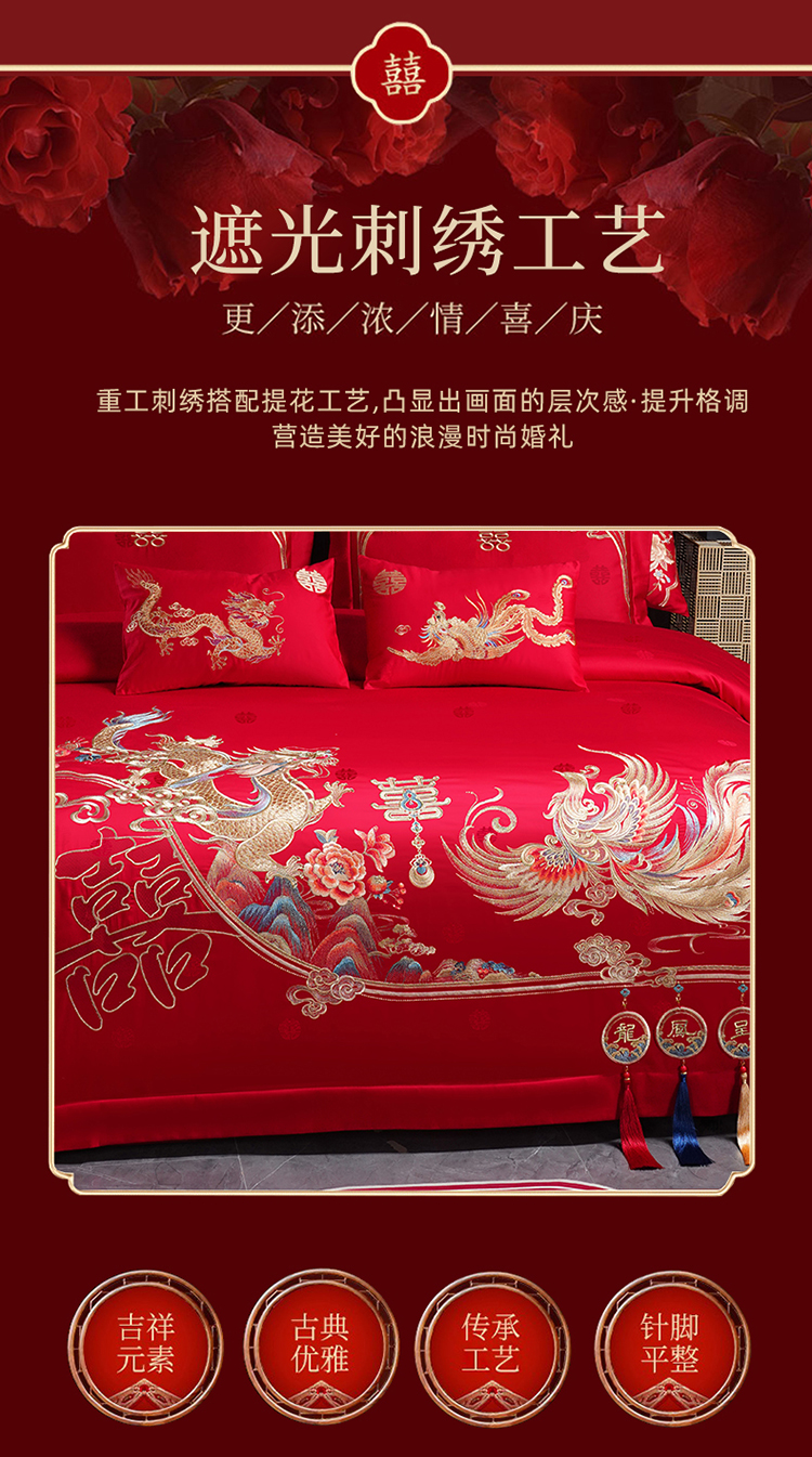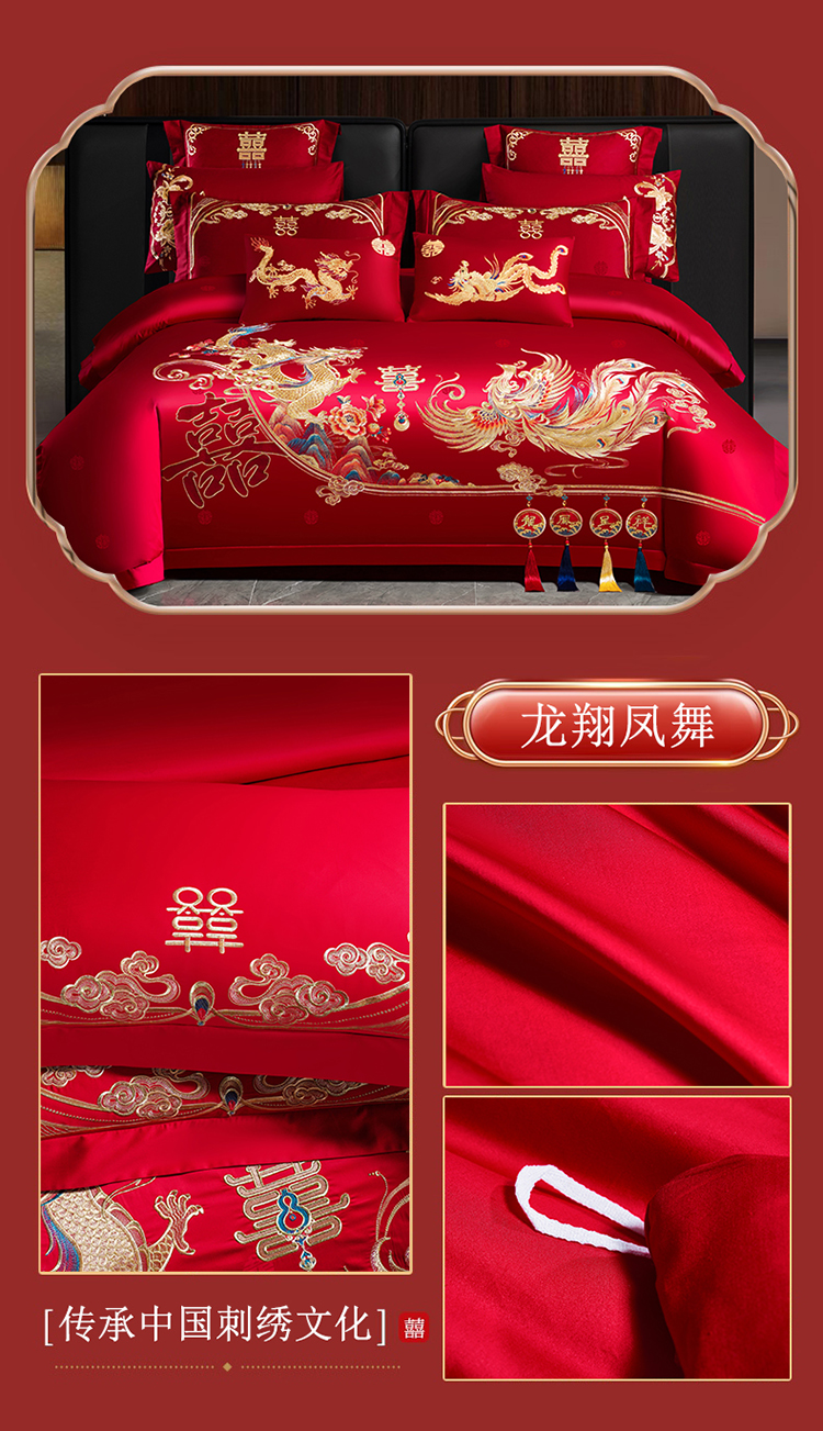 当前位置: 91家纺网 > 商品网购 > 床品套件 > 多件套 > 多件套 > 千禧家纺 2025年大版提花工艺绣花婚庆套件 龙翔凤舞