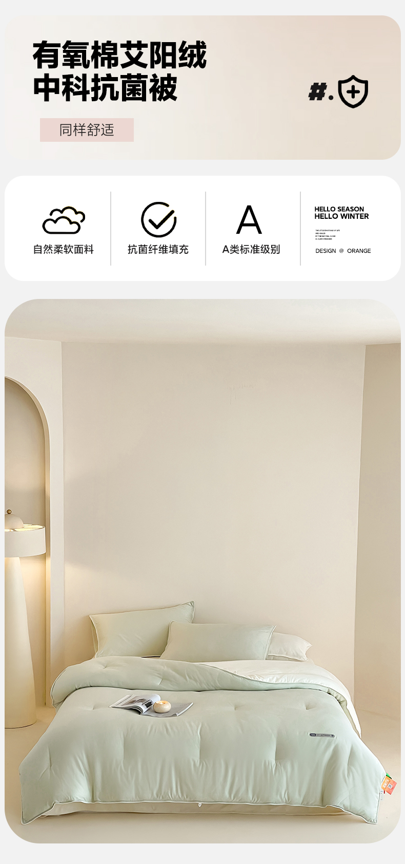 一加一 2025新款有氧棉艾阳绒中科抗菌被子被芯 梧枝-绿