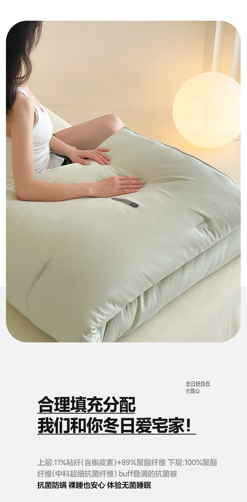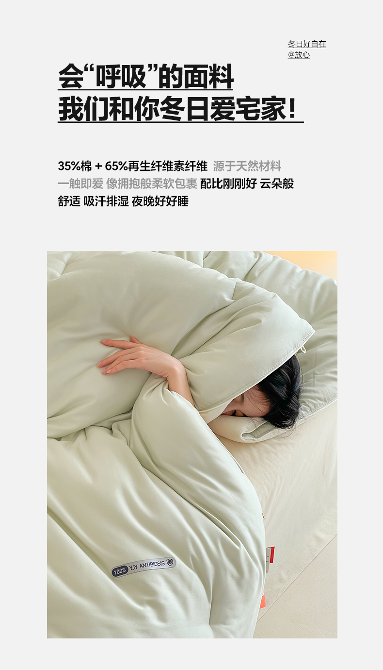• 91家纺网 家纺一手货源 找家纺 一加一 2025新款有氧棉艾阳绒中科抗菌被子被芯 梧枝-绿