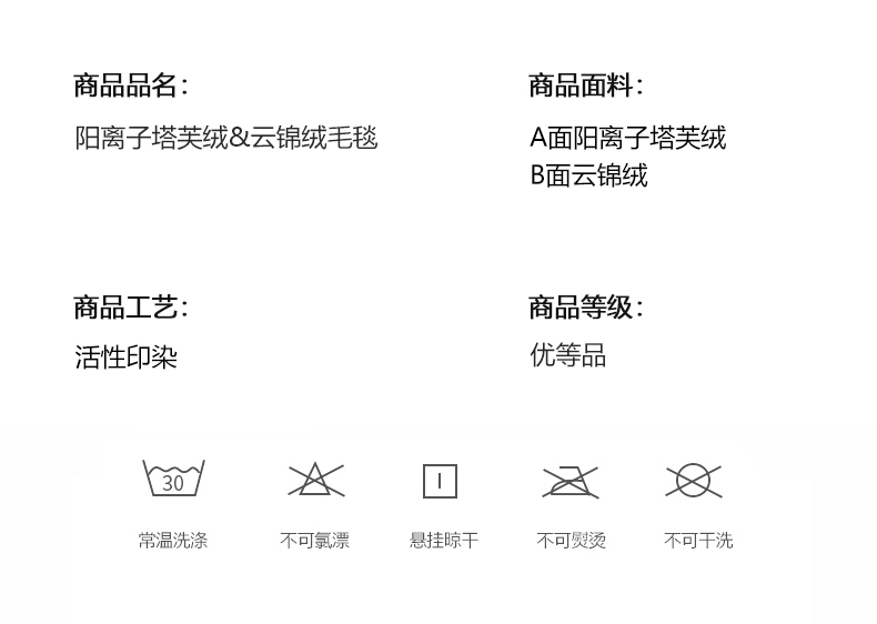 商品名称:雅诗帛 2025新款黑白阳离子复合多功能毛毯 山茶花