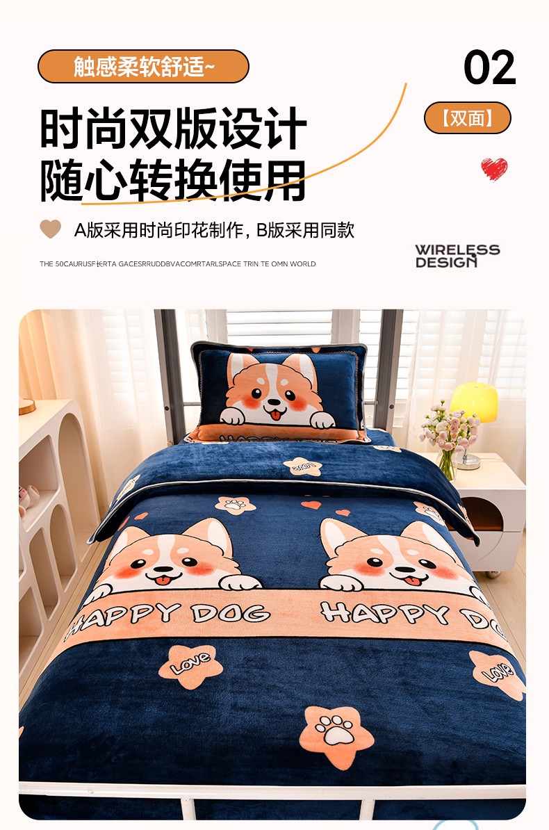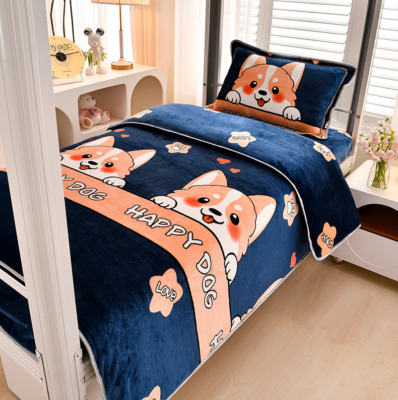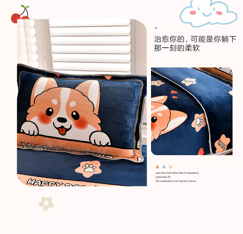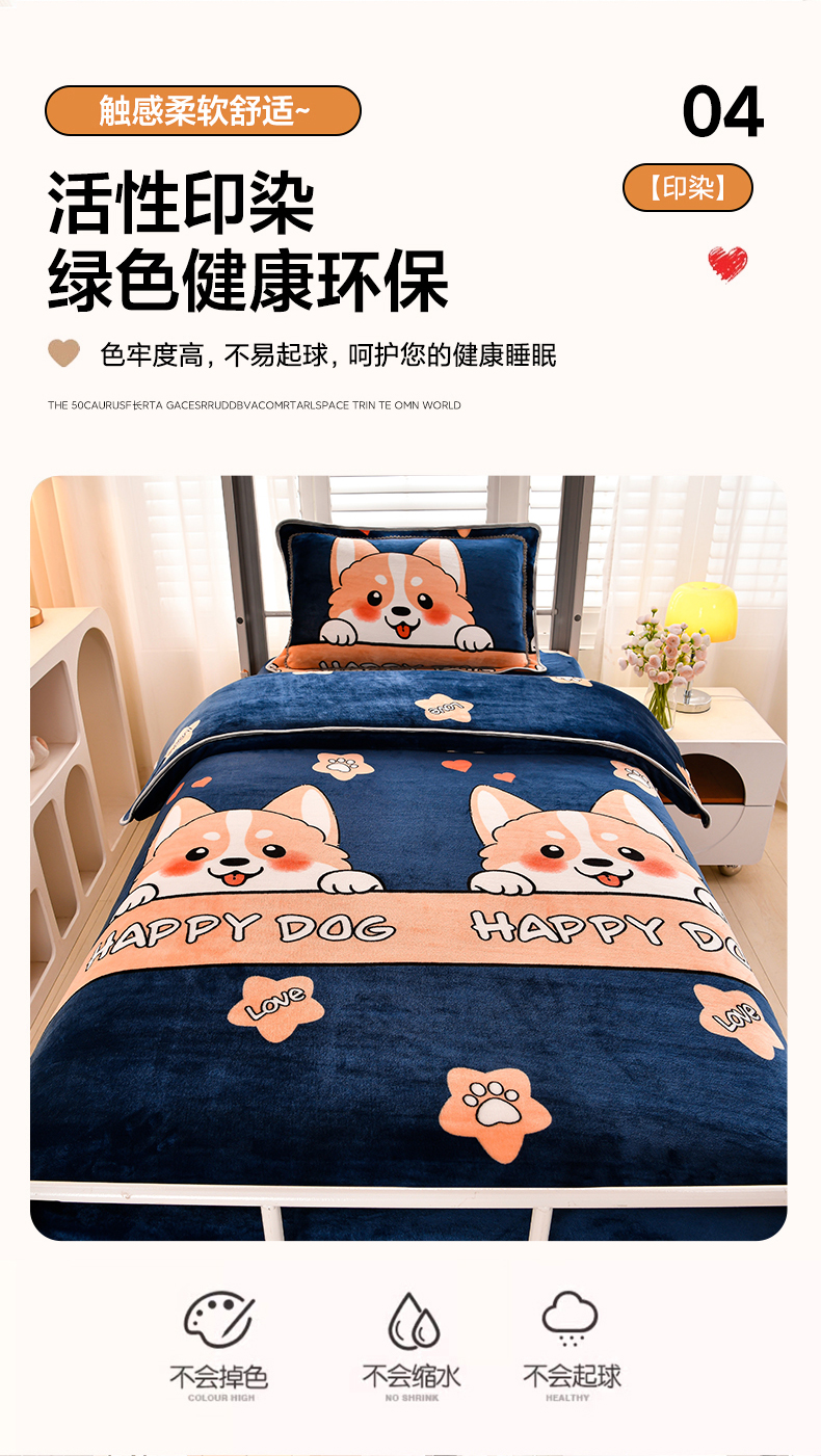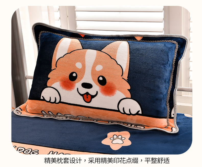 商品名称:绒品荟家纺 2025新款加厚牛奶绒三件套金貂绒法莱绒冬季床单款床笠款学生宿舍单人三件套萌宠