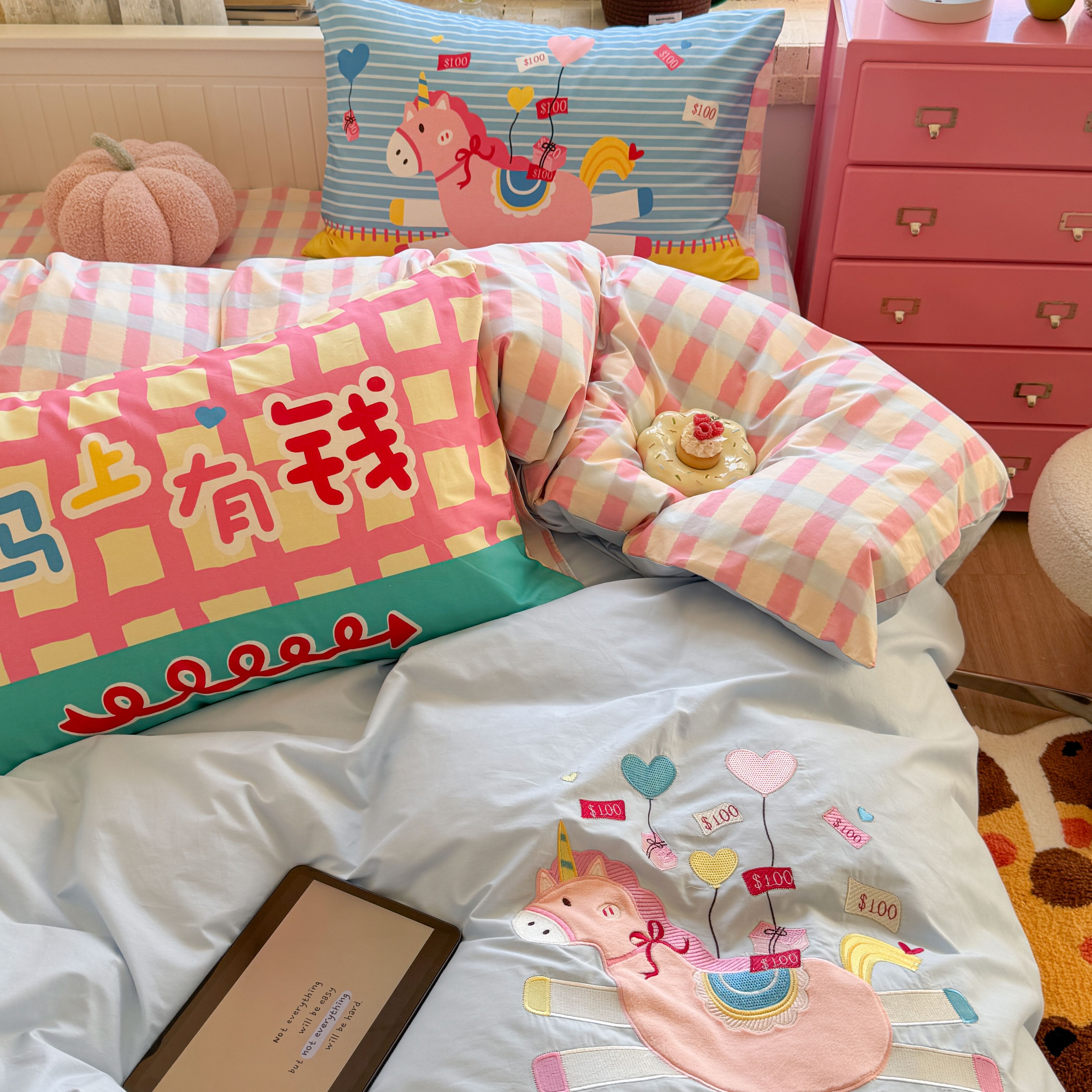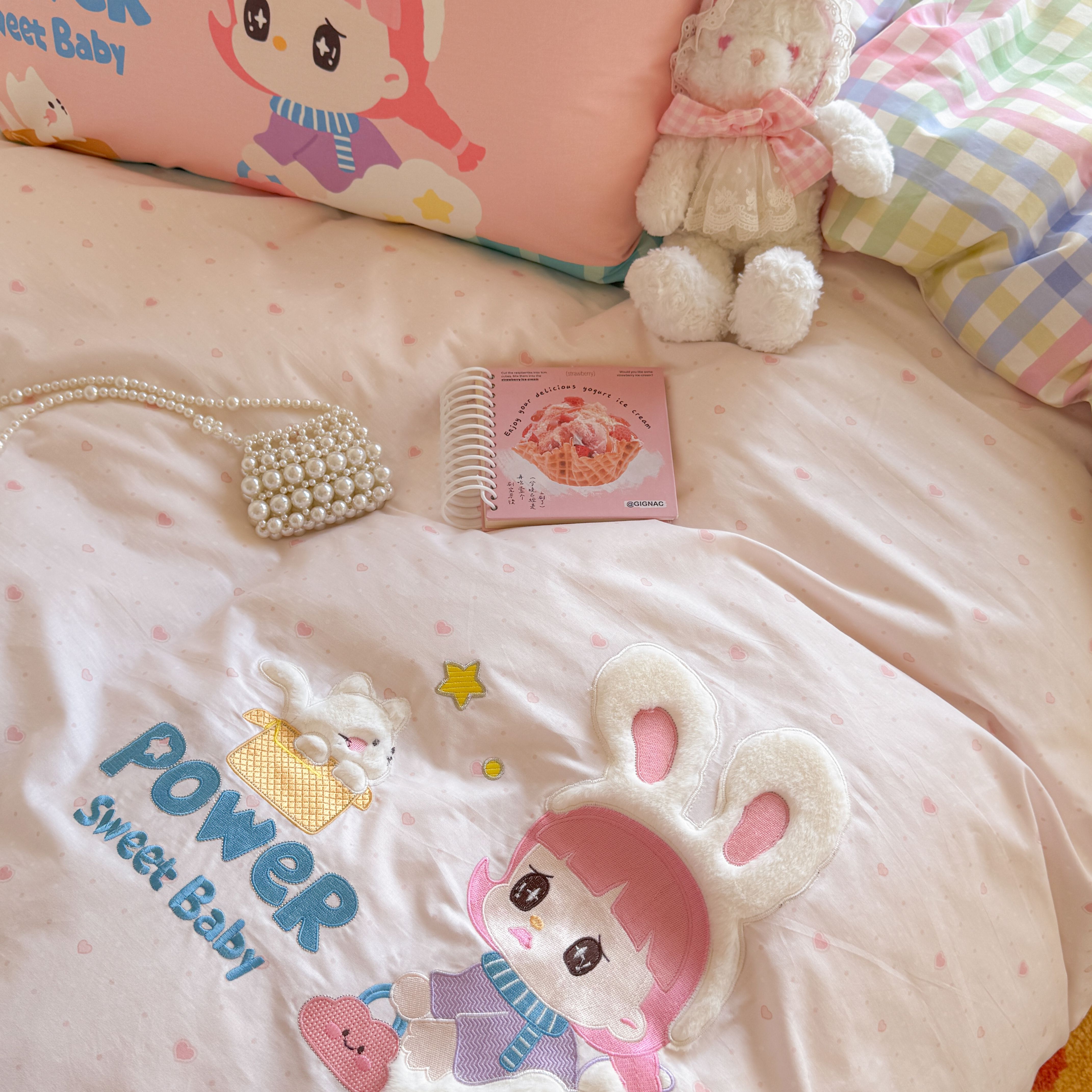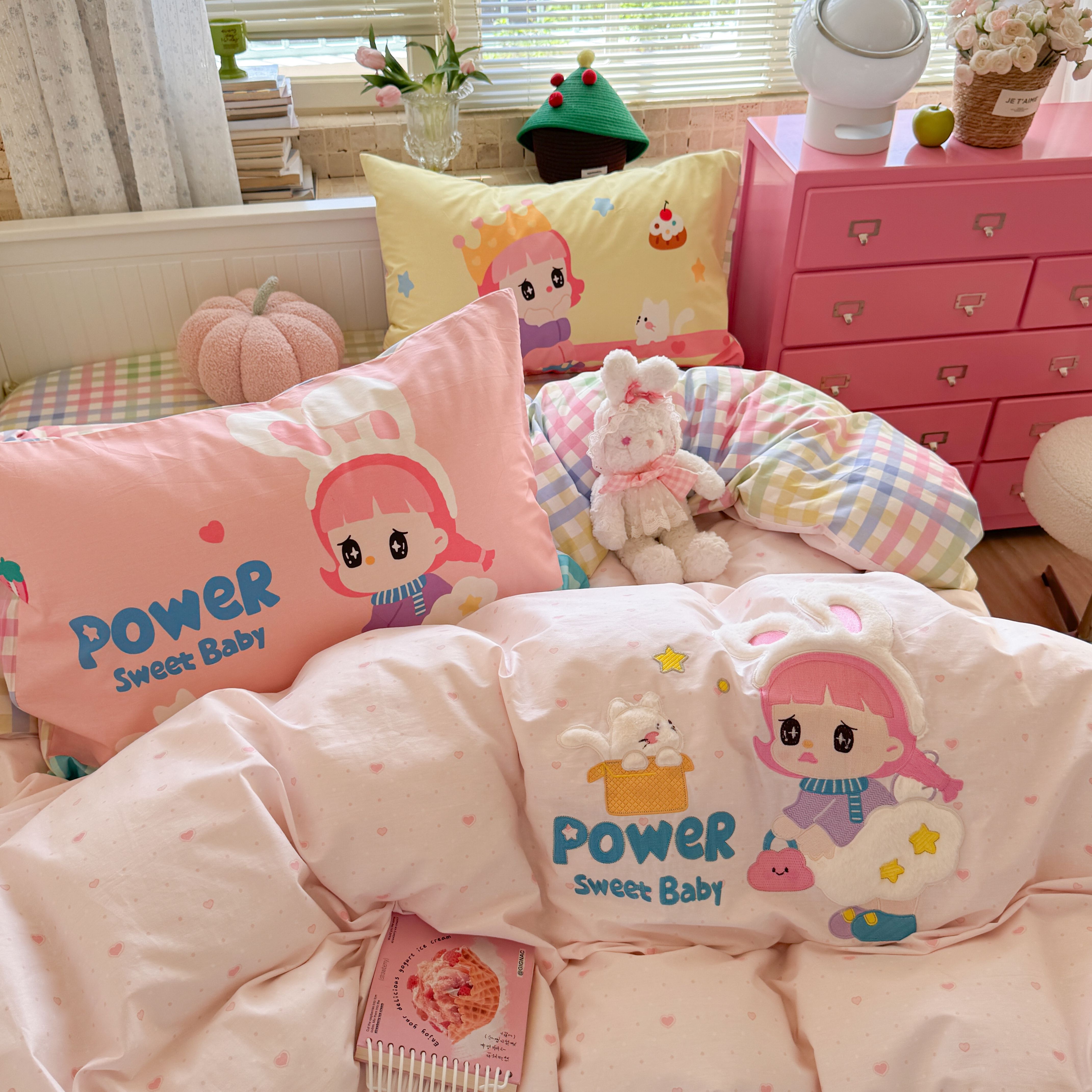 柚子YOUTH 2025新款全棉A类母婴级卡通绣花四件套 吹泡泡