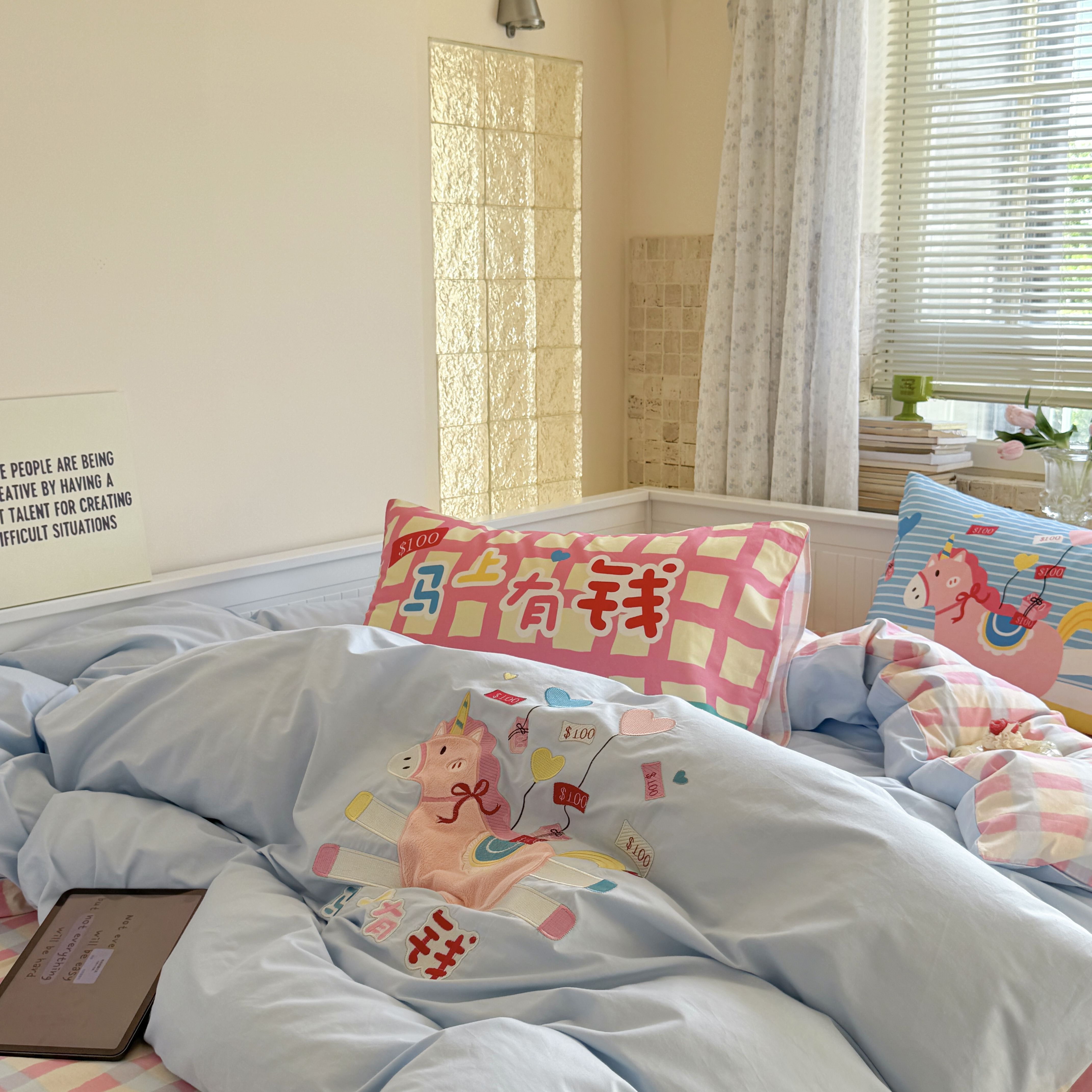 (总)柚子YOUTH 2025新款全棉A类母婴级卡通绣花四件套,吹泡泡,汉堡小猫,马上有钱,女孩的礼物,小狗面包,月亮船
