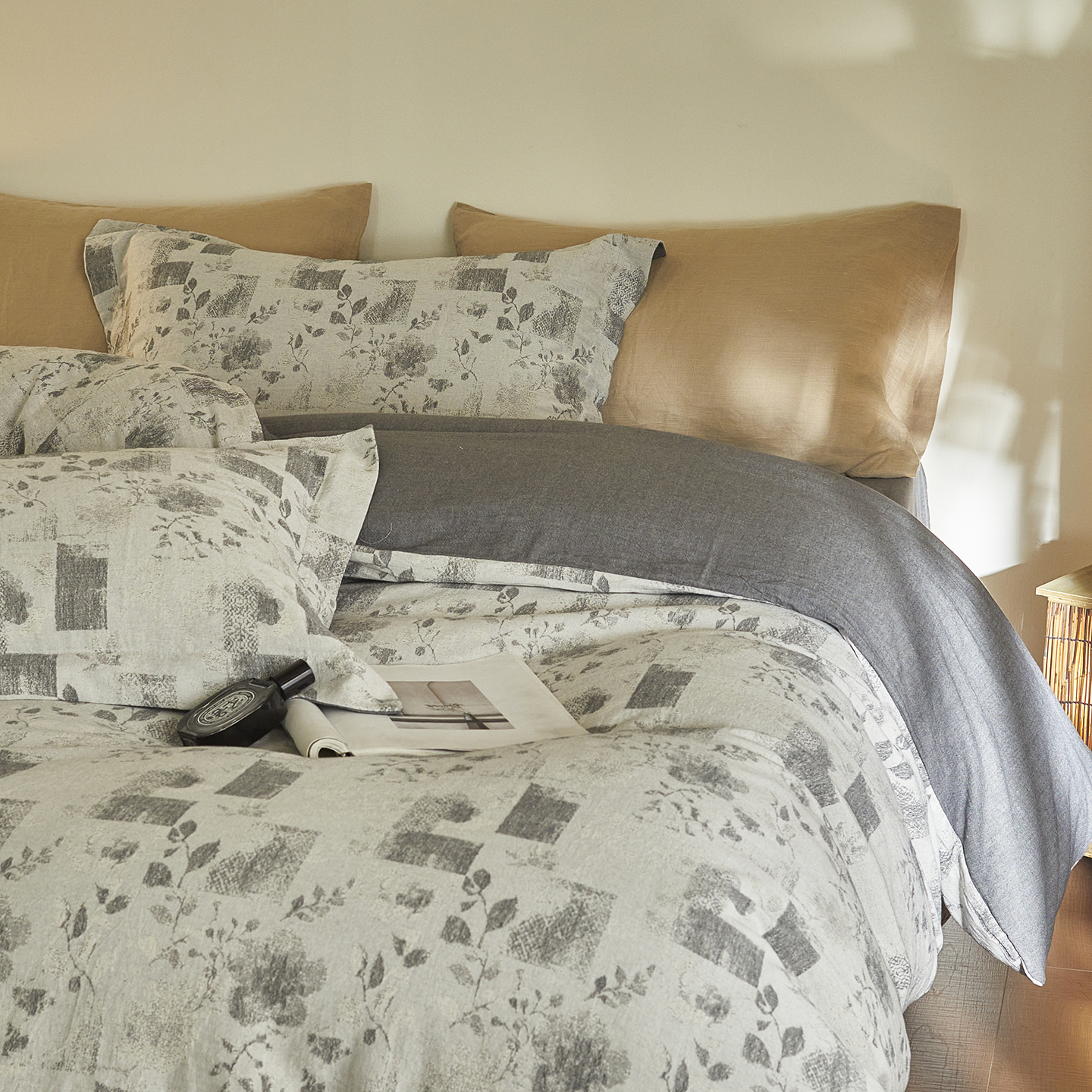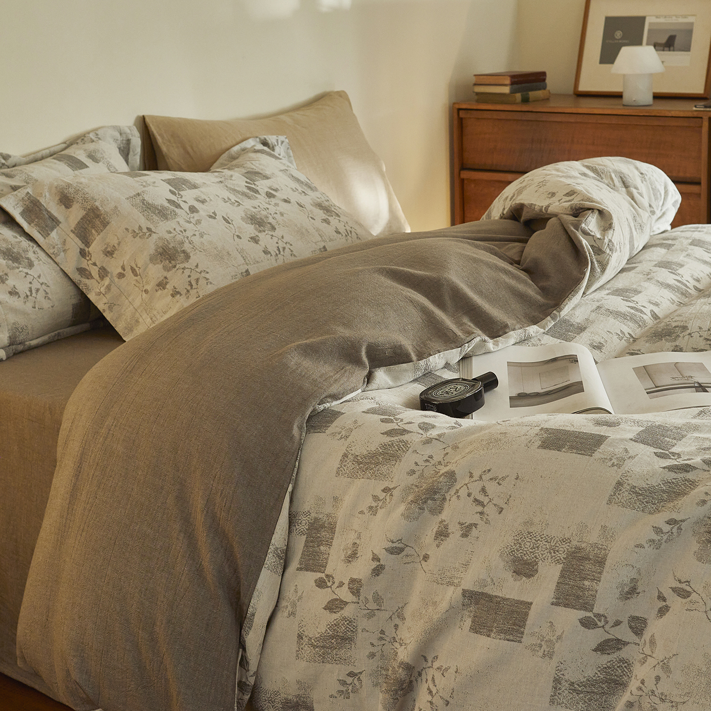 商品名称:梦享生活家居 2025新款高级轻奢色织双层纱大提花棉麻四件套 梦芙-浅灰
