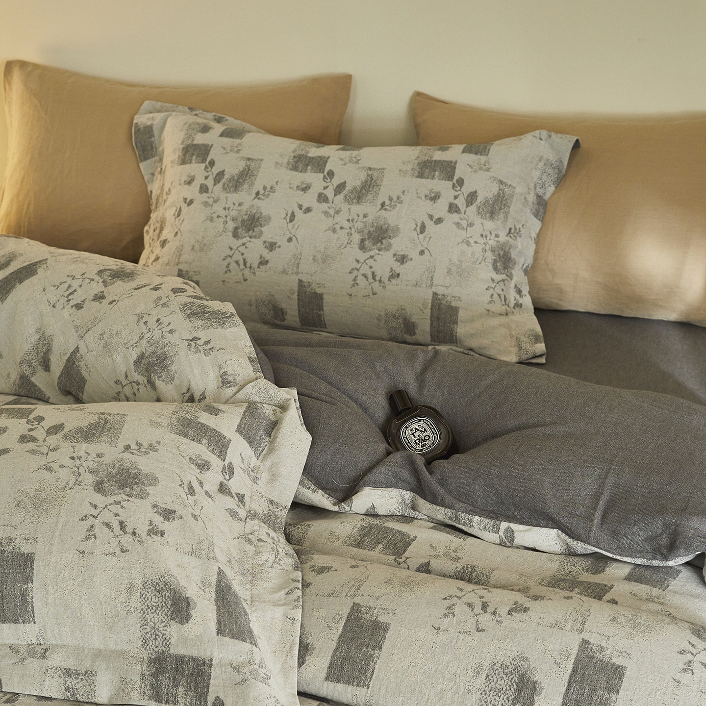 梦享生活家居 2025新款高级轻奢色织双层纱大提花棉麻四件套 梦芙-浅灰