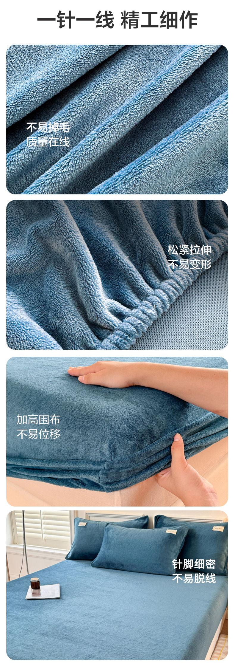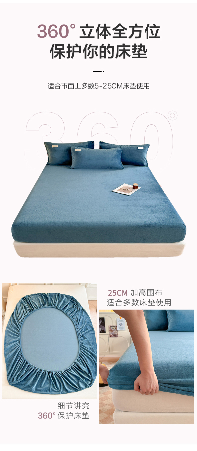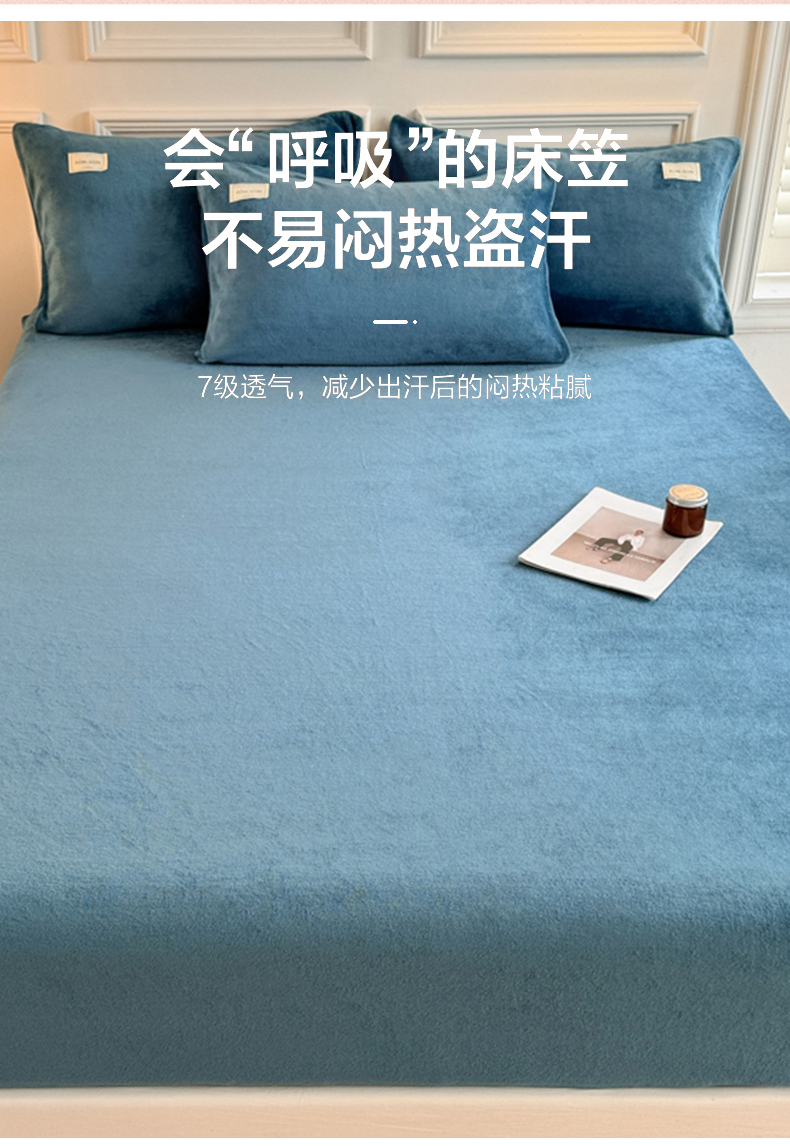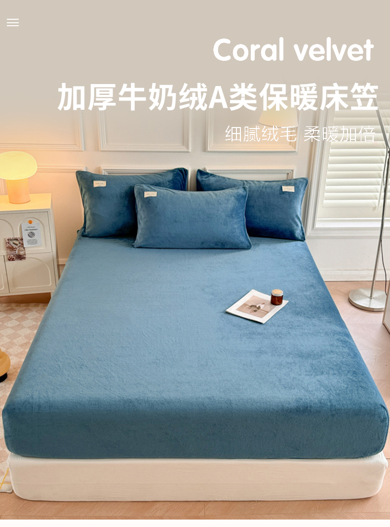 • 91家纺网 家纺一手货源 找家纺 眠博士 2025新款简约牛奶绒纯色单床笠 牛奶绒床笠-靛青