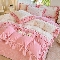 商品名称:苏东来家纺2025兔毛绒韩版工艺款花边牛奶绒四件套刺绣绣花套件 甜心公主粉