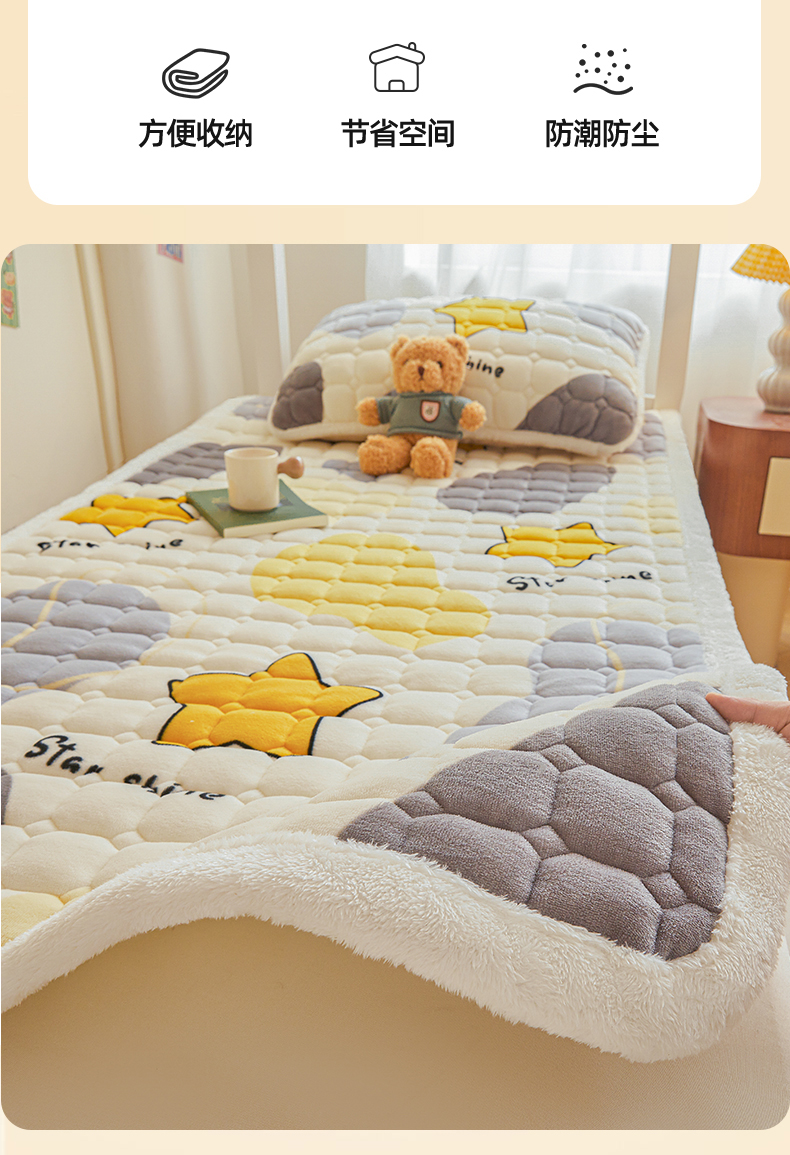 • 91家纺网 家纺一手货源 找家纺 雯豆家纺 【加厚款】2025新款牛奶绒床褥床垫学生宿舍床护垫子 牛奶绒床褥-斑点星星【加厚款】