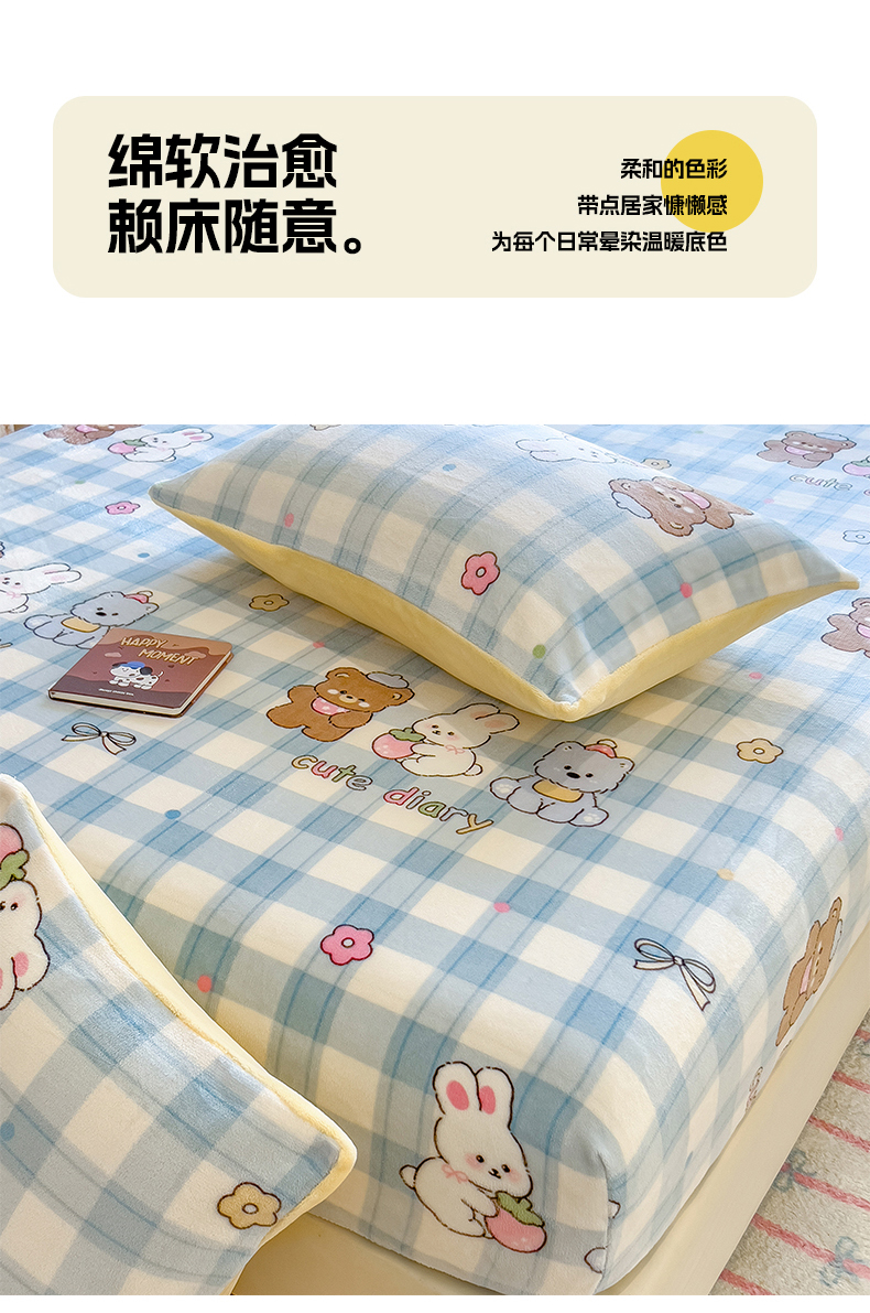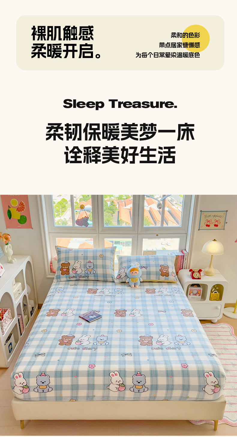 • 91家纺网 家纺一手货源 找家纺 摩妮卡 2025新款印花系列小清新牛奶绒印花床笠三件套 童趣伙伴