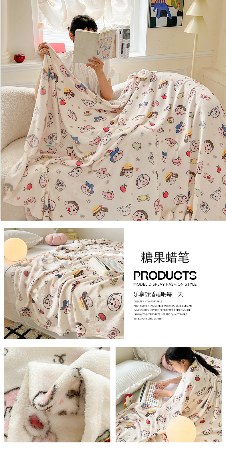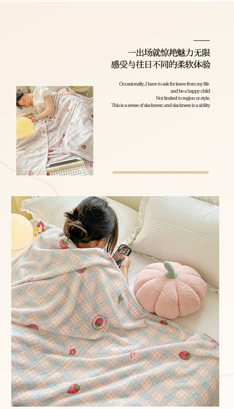 商品名称:初念 2025新款四季款双面牛奶绒多功能毛毯 萌萌女孩