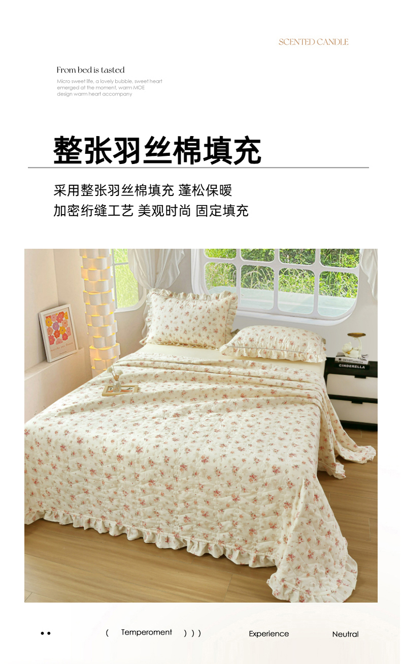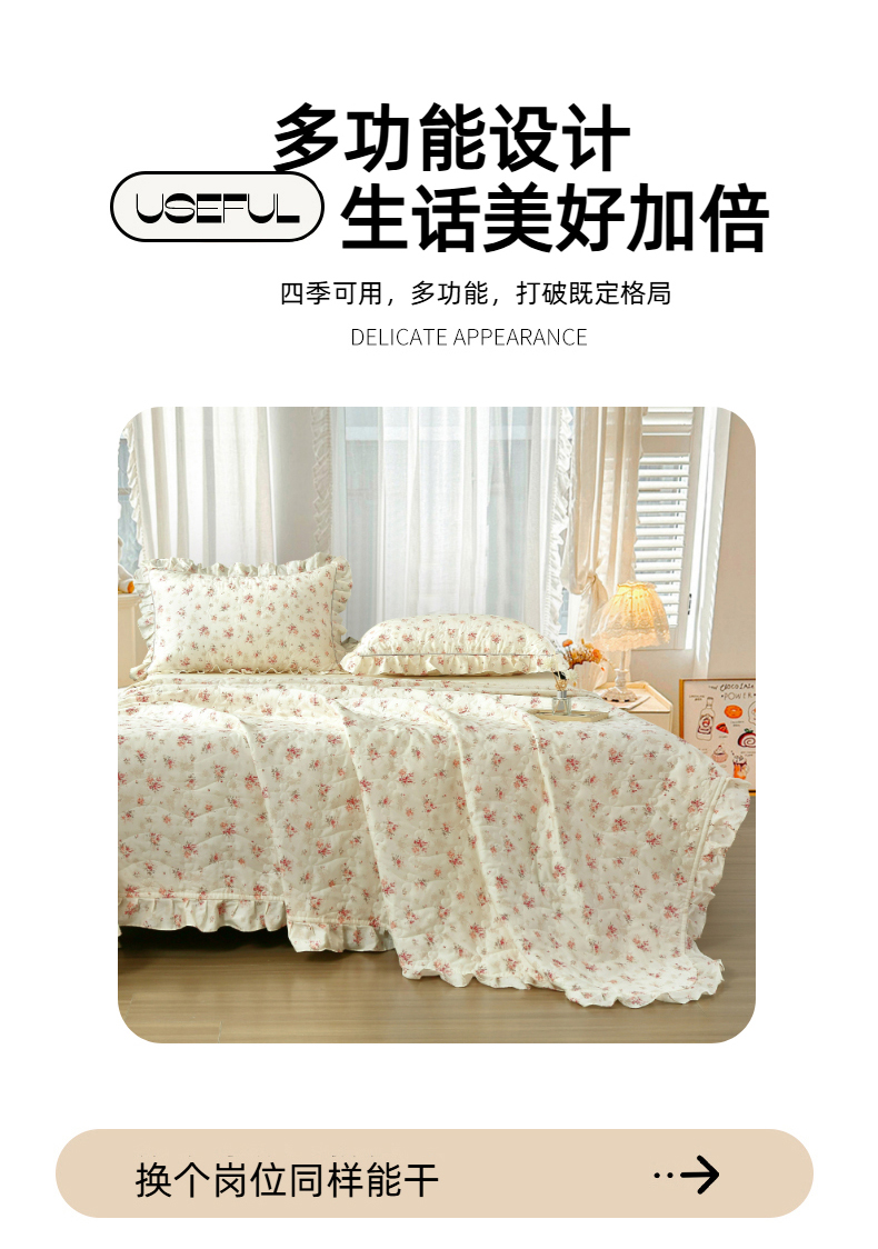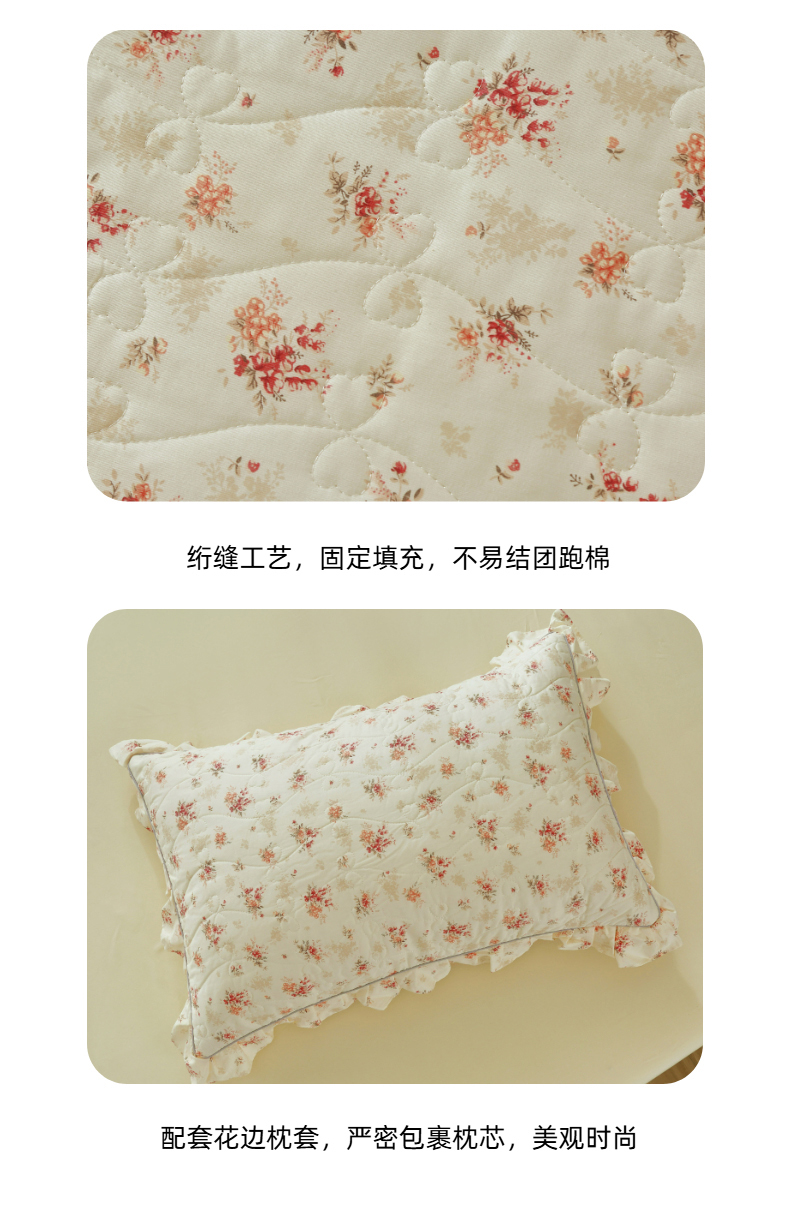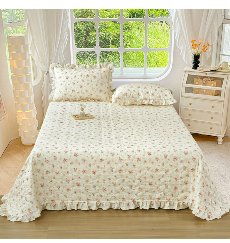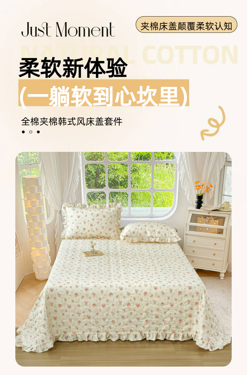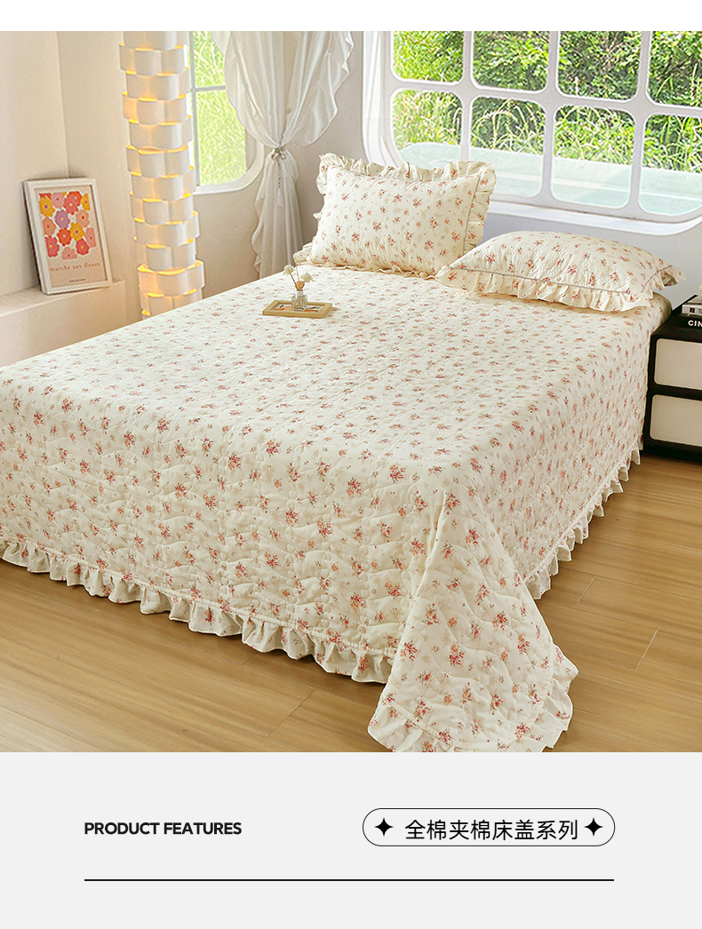 益利多 2025新款130*70全棉斜纹夹棉绗缝小花边床盖纯棉加厚床盖三件套 繁花似锦