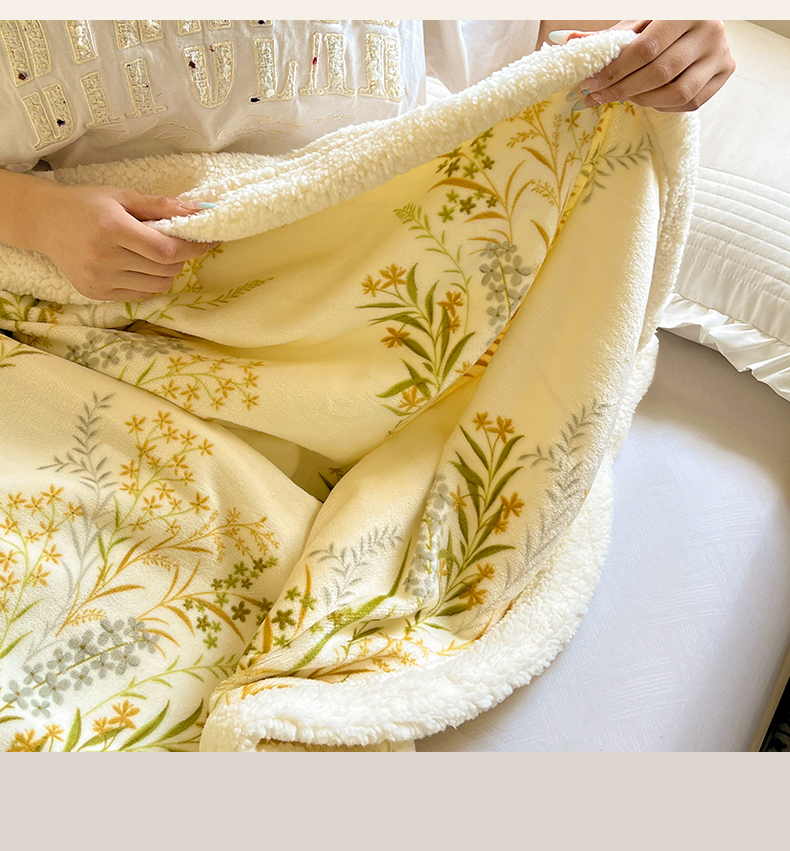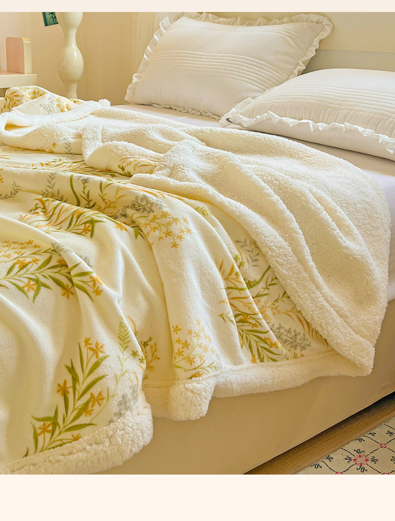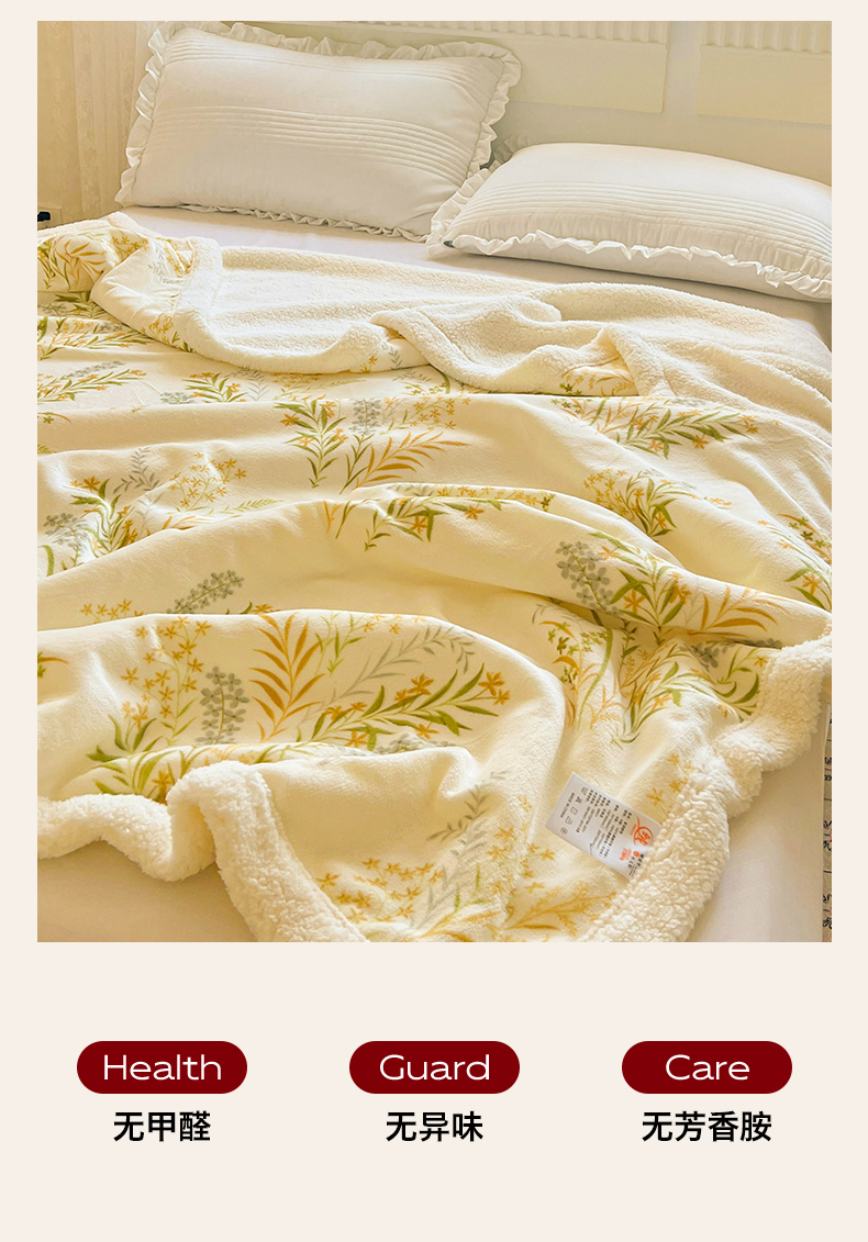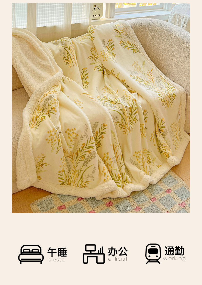 商品名称:名兮 2025新款秋冬高克重牛奶绒羊羔绒多功能盖毯 毛毯-仙草