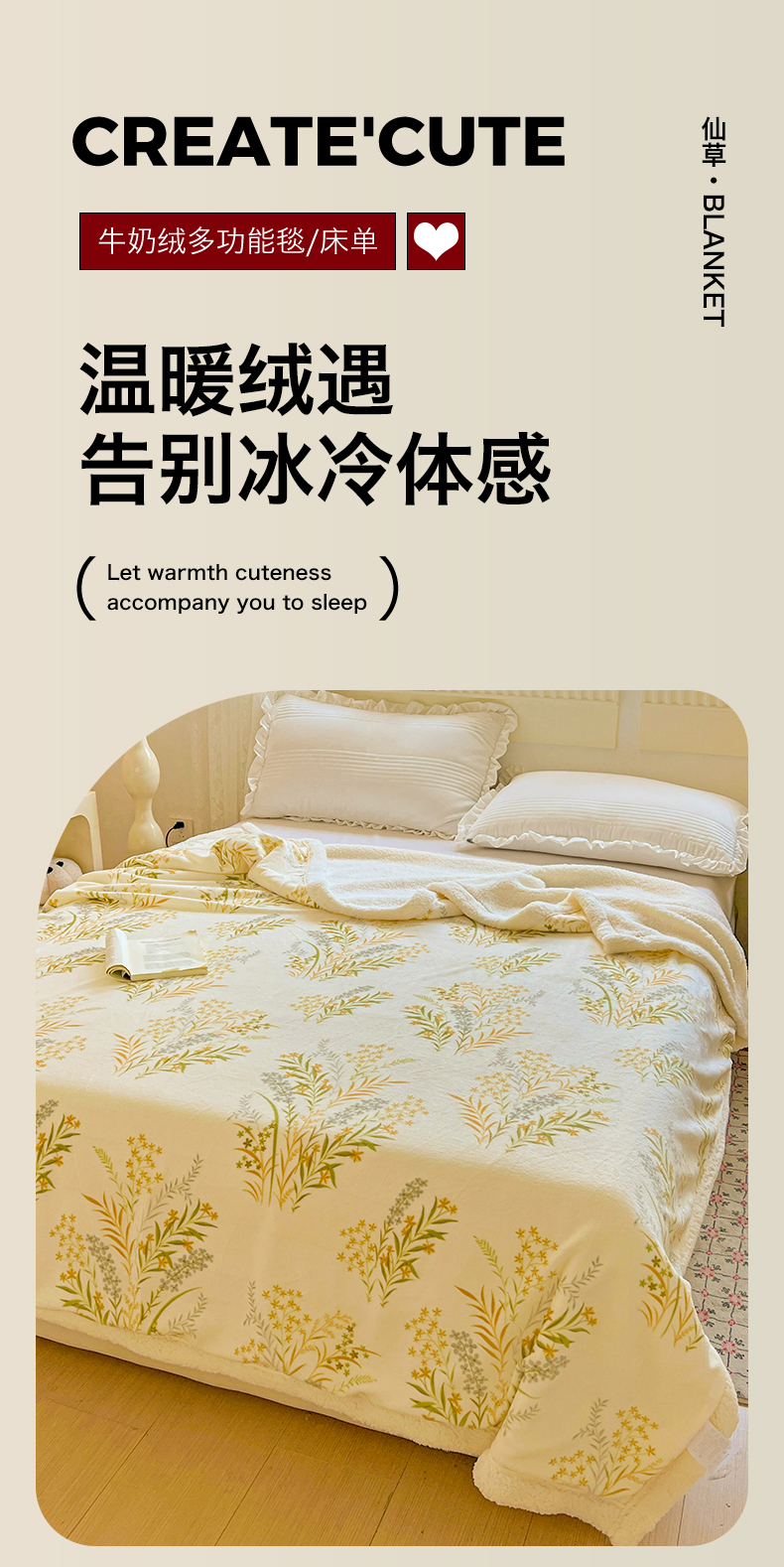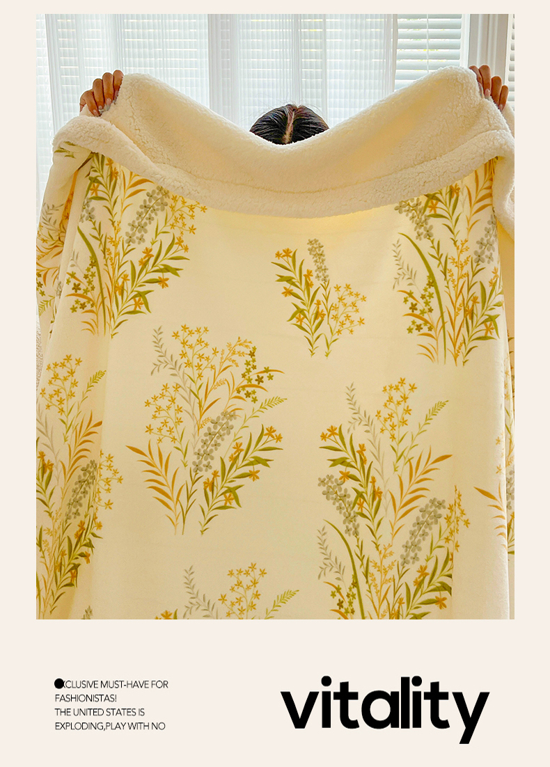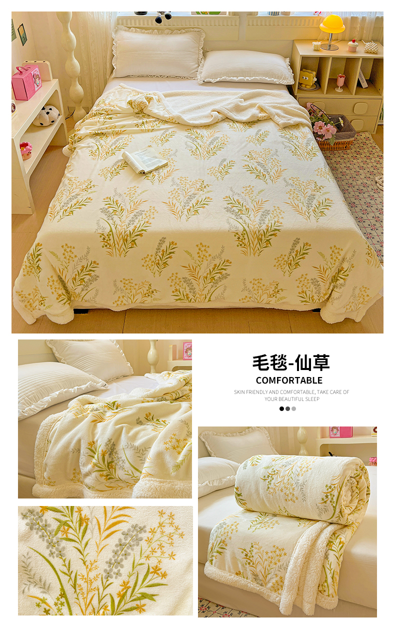 商品名称:名兮 2025新款秋冬高克重牛奶绒羊羔绒多功能盖毯 毛毯-仙草