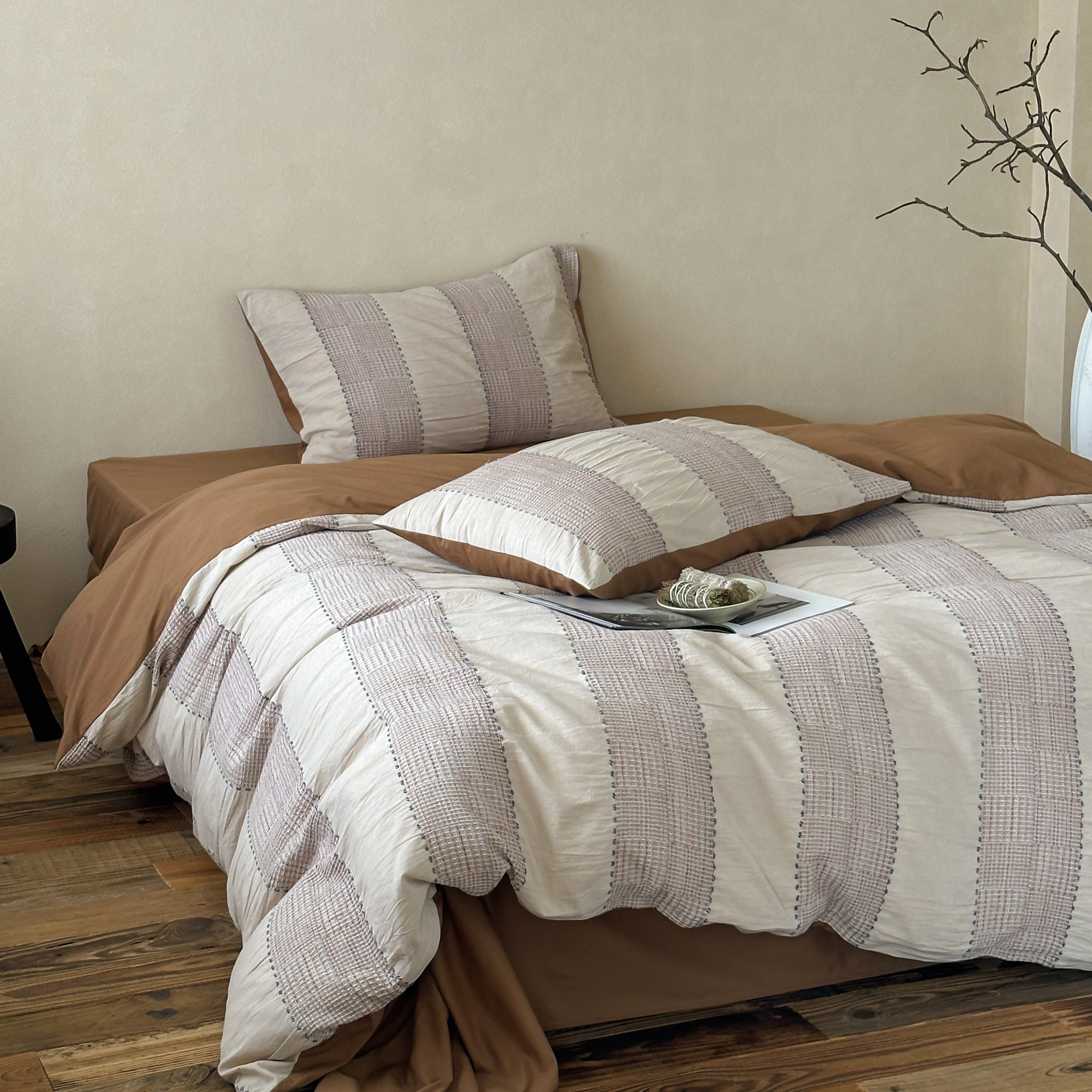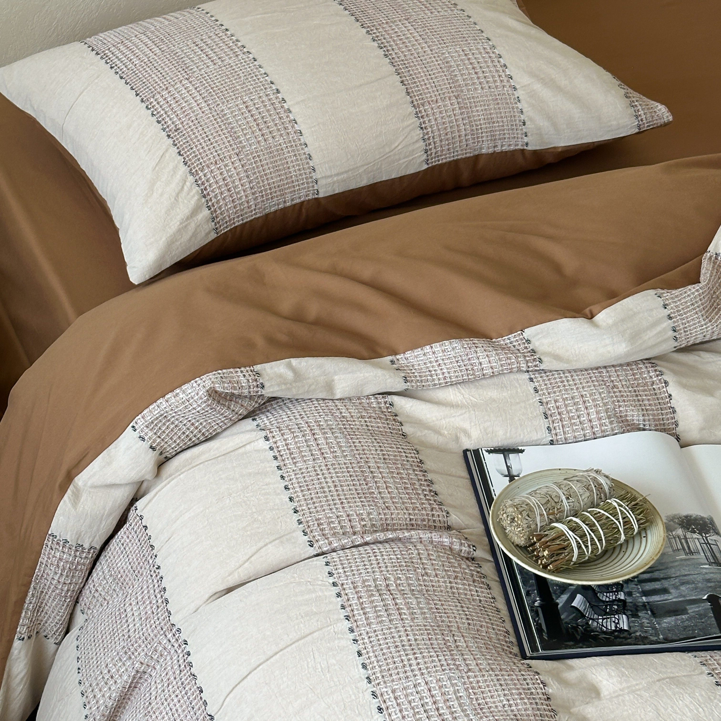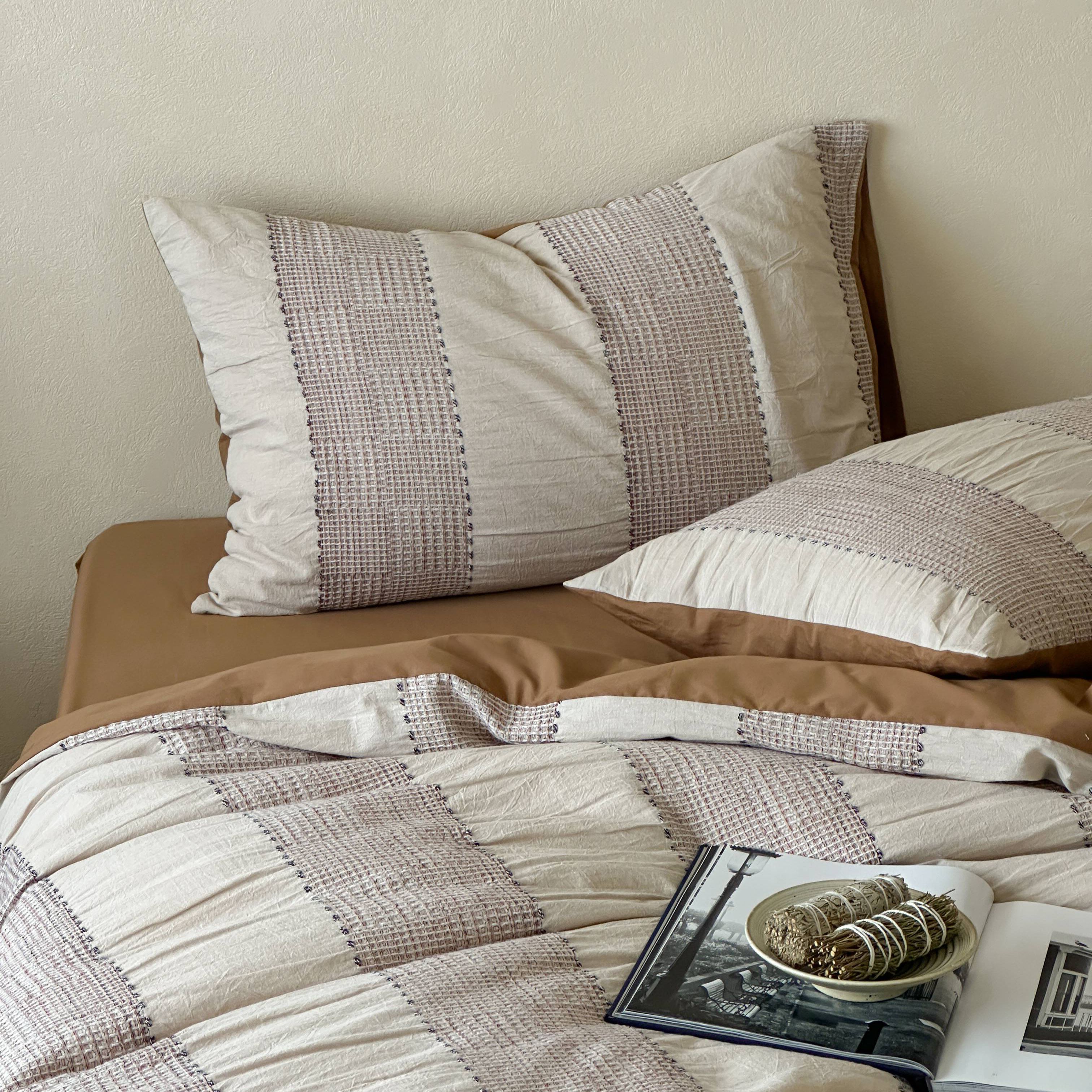 当前位置: 91家纺网 > 商品网购 > 床品套件 > 四件套 > 全棉普通四件套 > 云上 2025新款法式全棉纯棉串绳华夫格四件套 串绳-烟灰