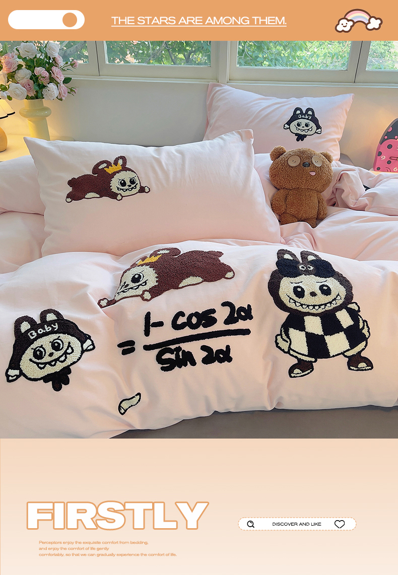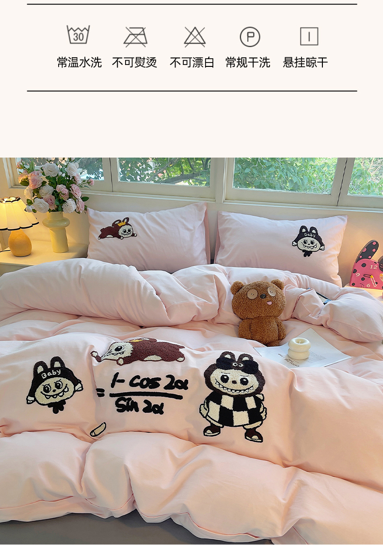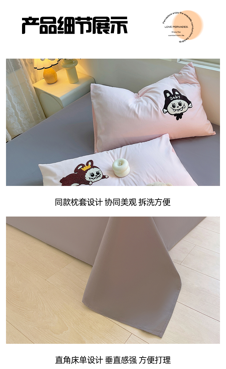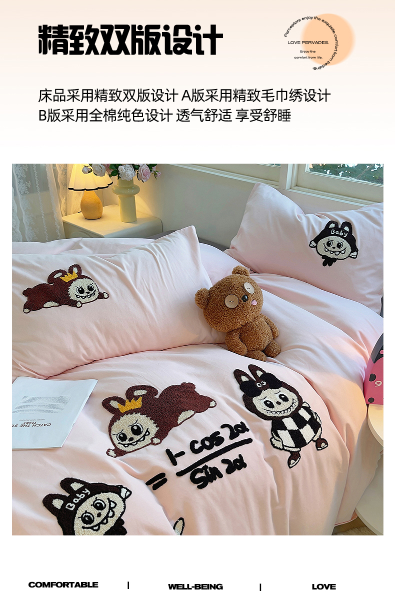 商品名称:炫拼家纺 2025新款全棉磨毛卡通毛巾绣加厚纯棉四件套-可梦系列 可梦-好学布布