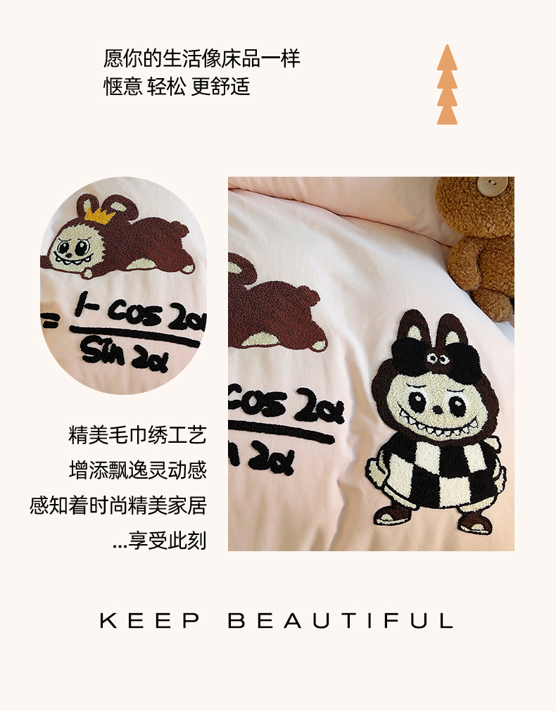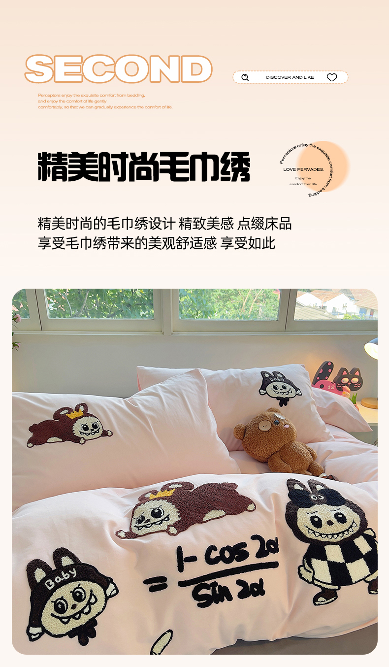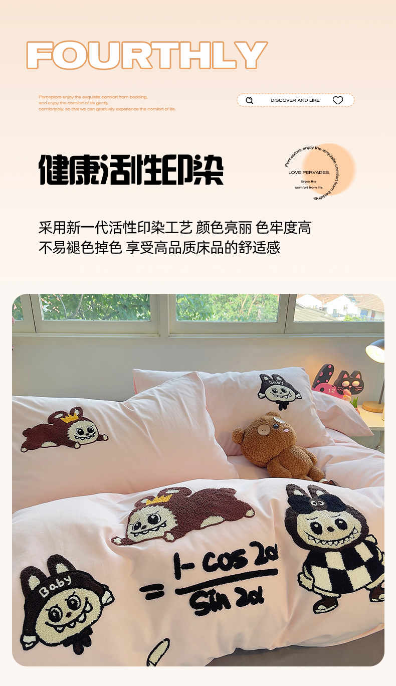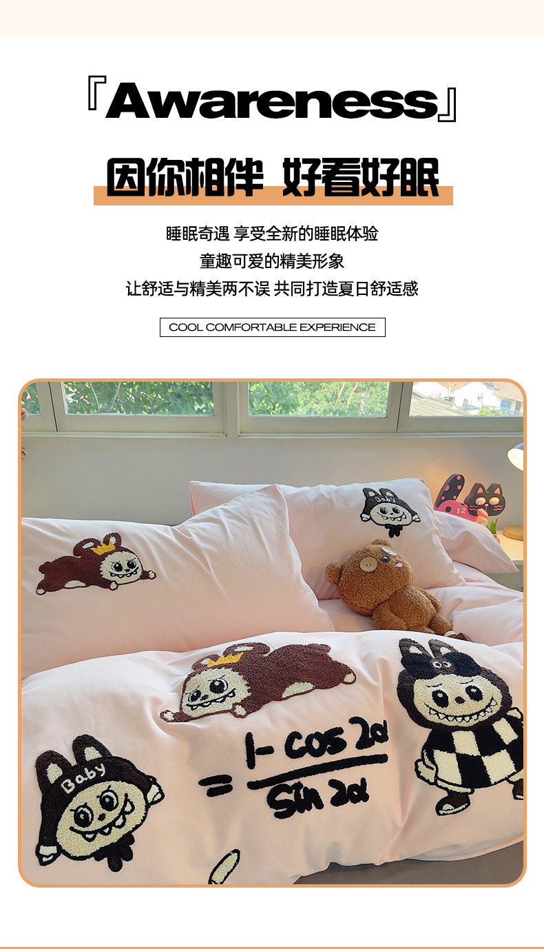 商品名称:炫拼家纺 2025新款全棉磨毛卡通毛巾绣加厚纯棉四件套-可梦系列 可梦-好学布布