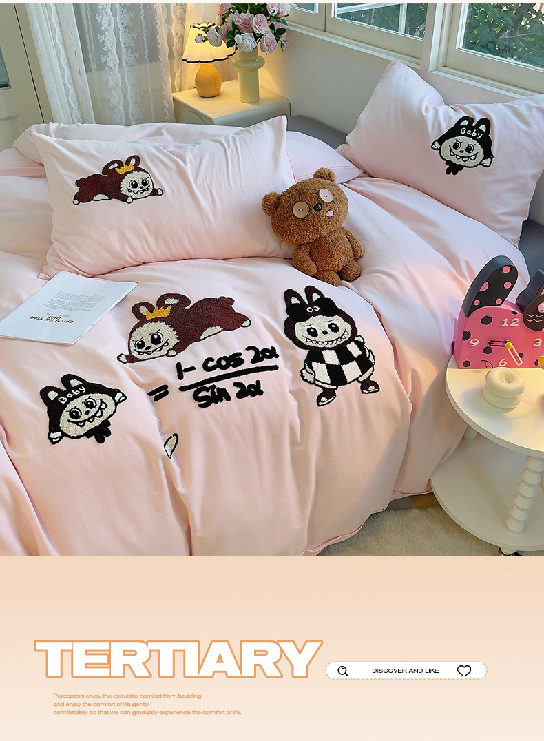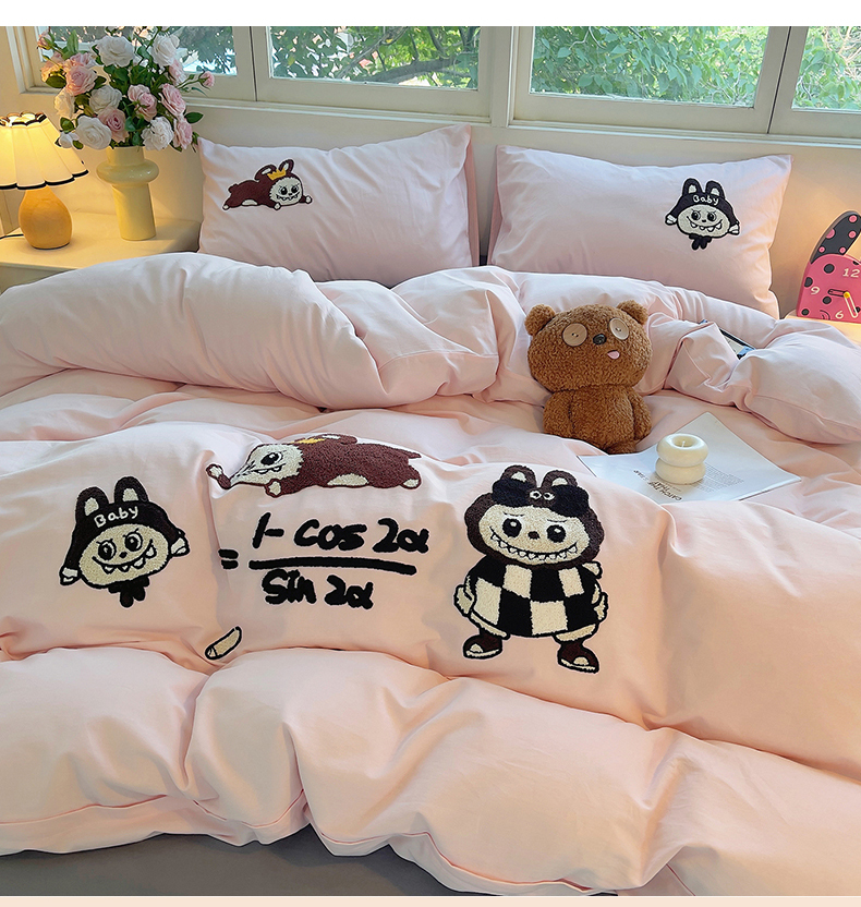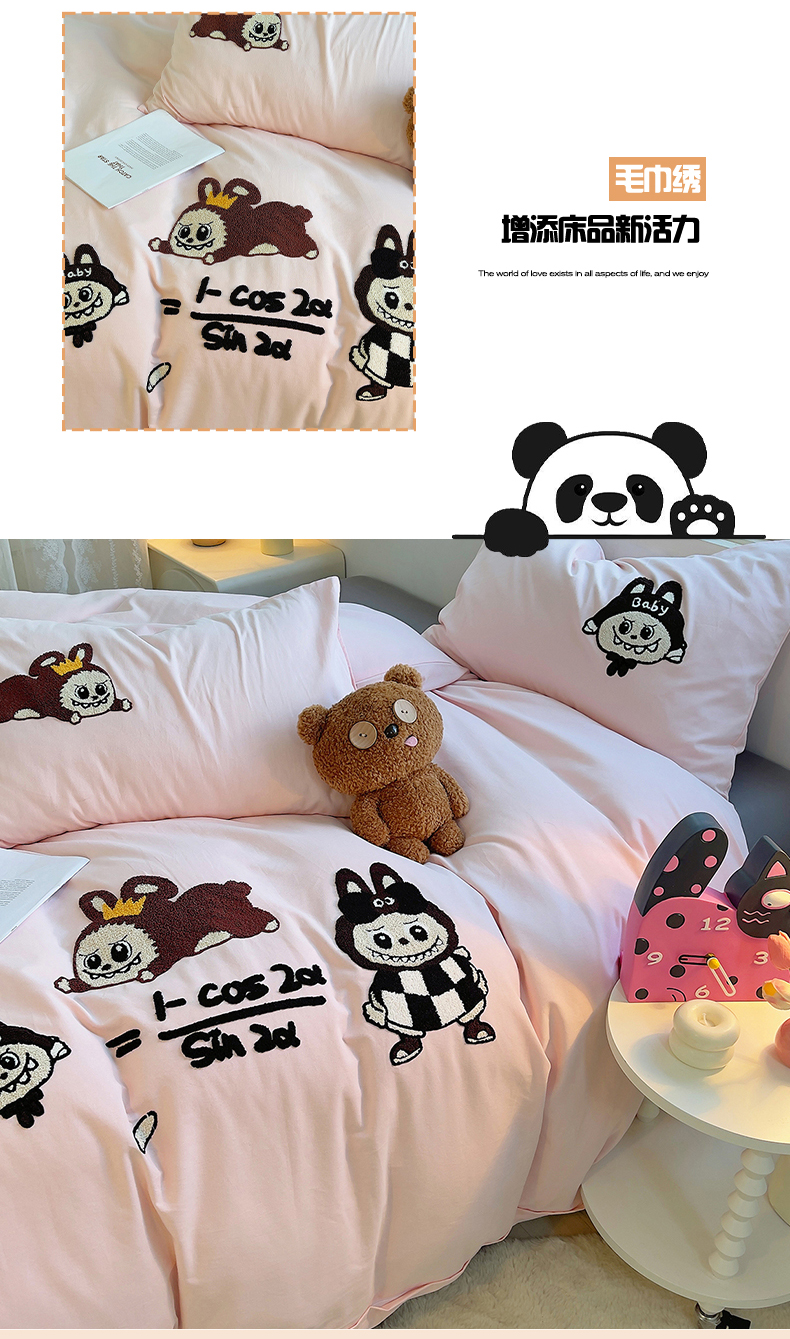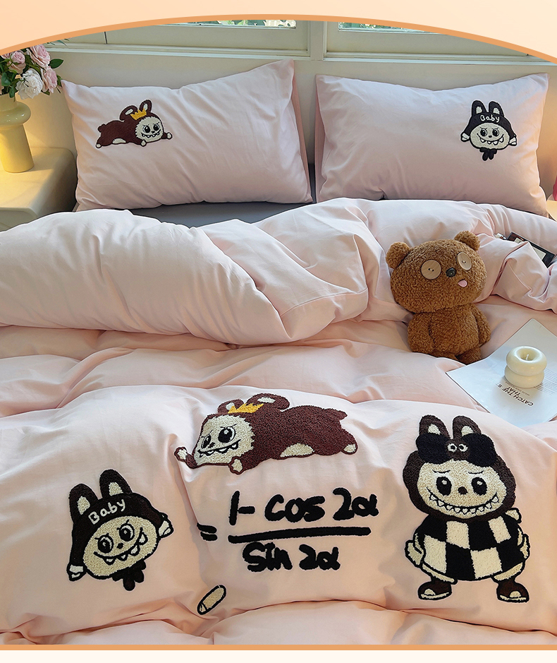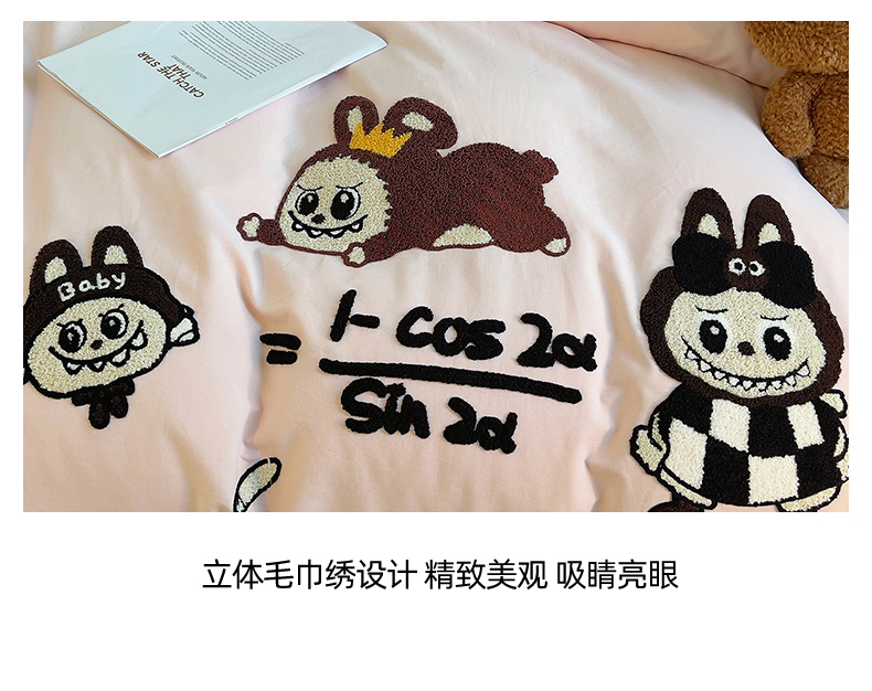 炫拼家纺 2025新款全棉磨毛卡通毛巾绣加厚纯棉四件套-可梦系列 可梦-好学布布