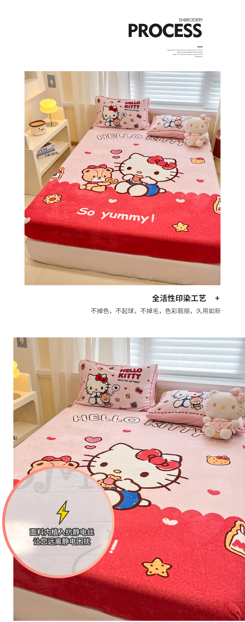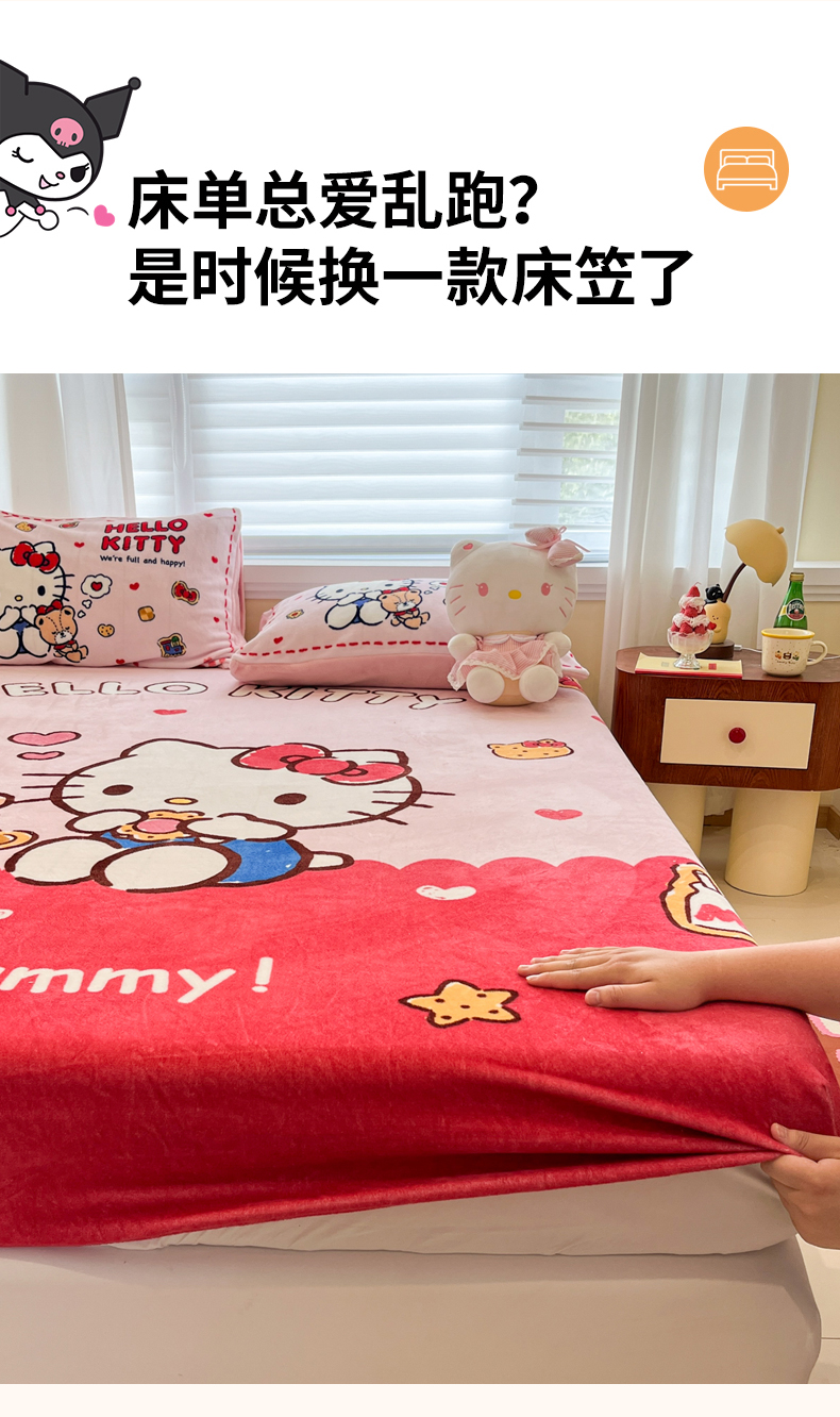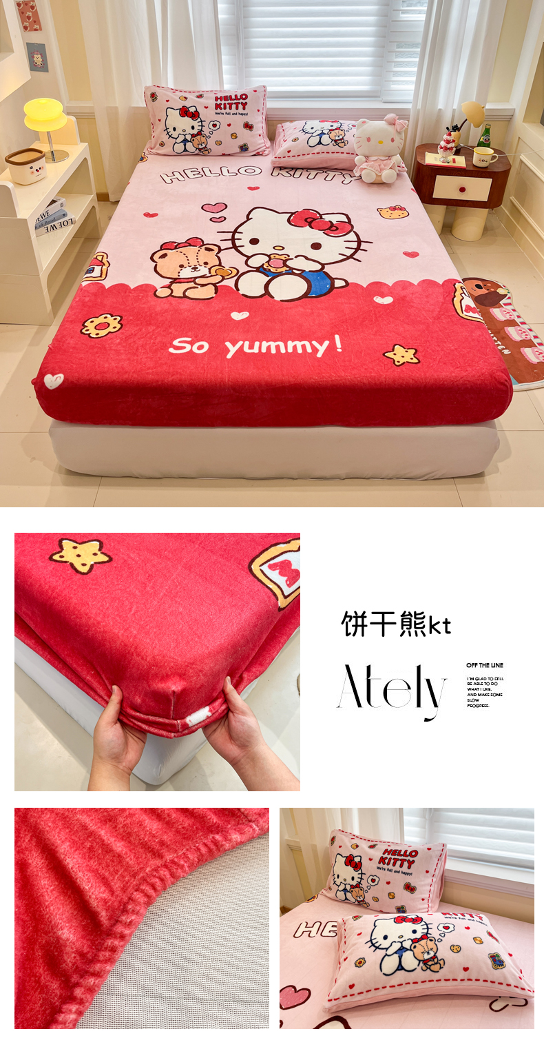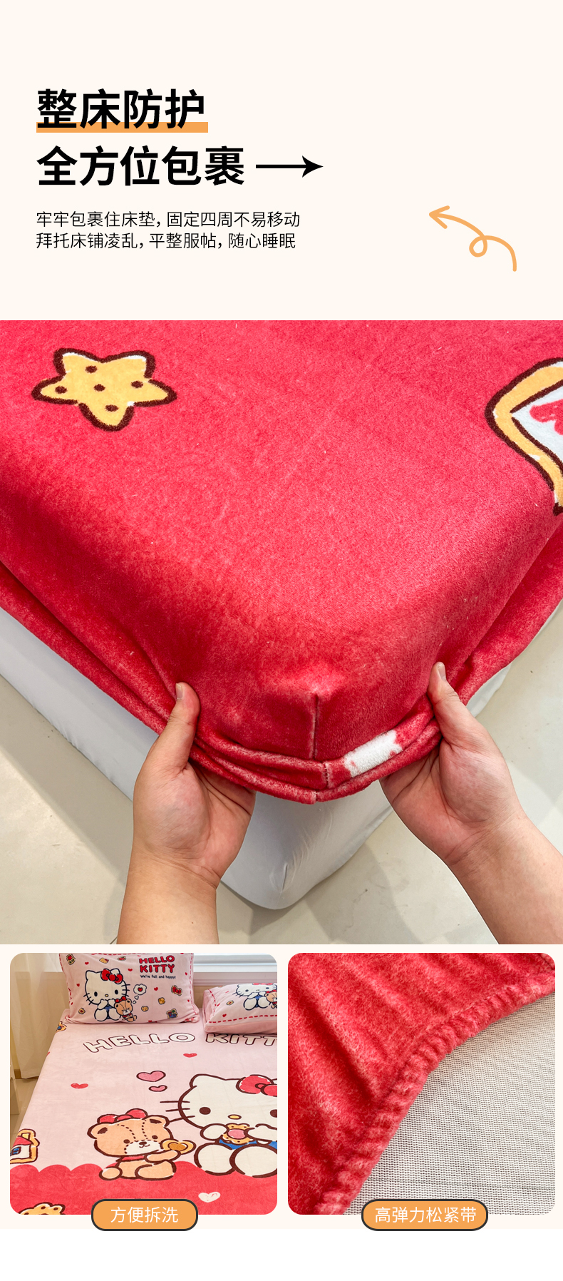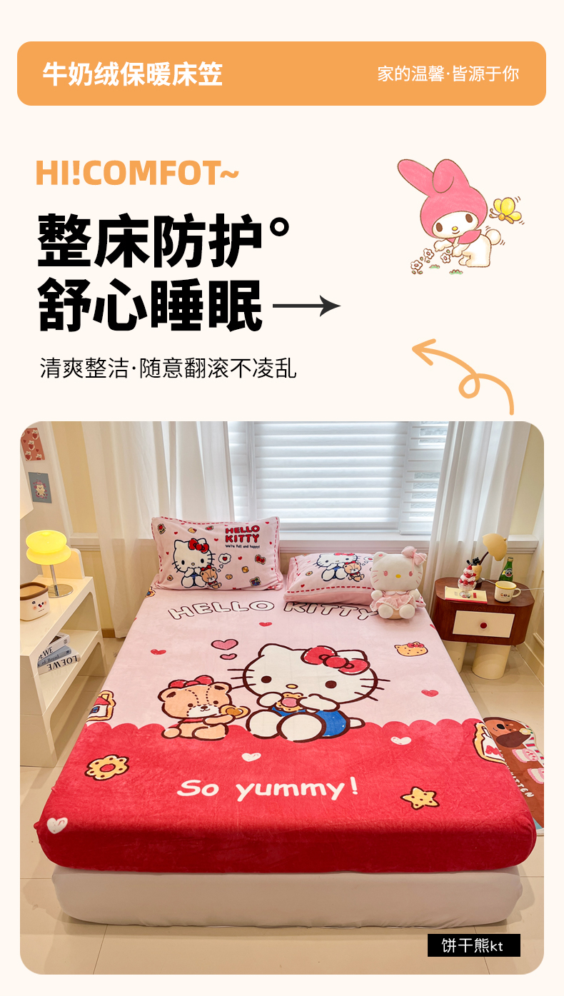 金爱家 2025新款大版三丽鸥高克重牛奶绒保暖床笠 绒大版单品-饼干熊kt
