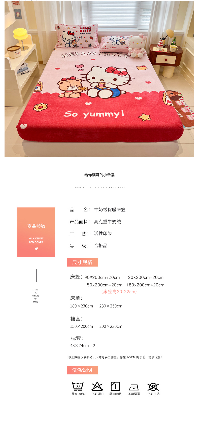 • 91家纺网 家纺一手货源 找家纺 金爱家 2025新款大版三丽鸥高克重牛奶绒保暖床笠 绒大版单品-饼干熊kt