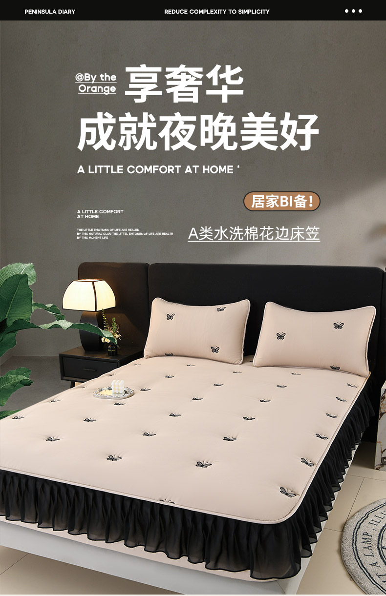 (总)推推家纺 2025新款A类水洗棉花边床笠单品床笠床笠单件,蝴蝶-卡其,蝴蝶-蓝色,蝴蝶-米白,蝴蝶-深灰,花边款玫瑰-卡其,花边款玫瑰-蓝色,花边款玫瑰-米白,花边款玫瑰-深灰