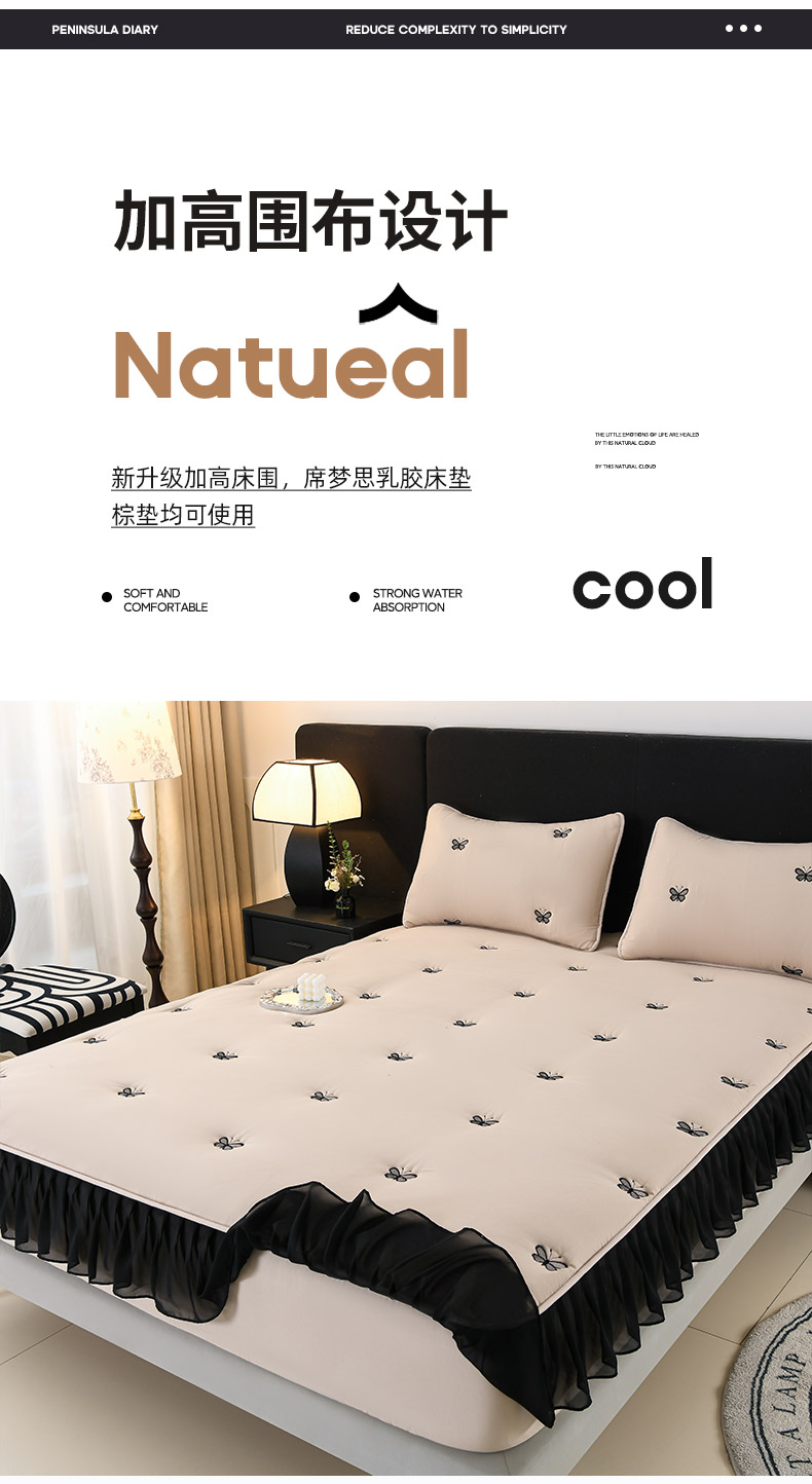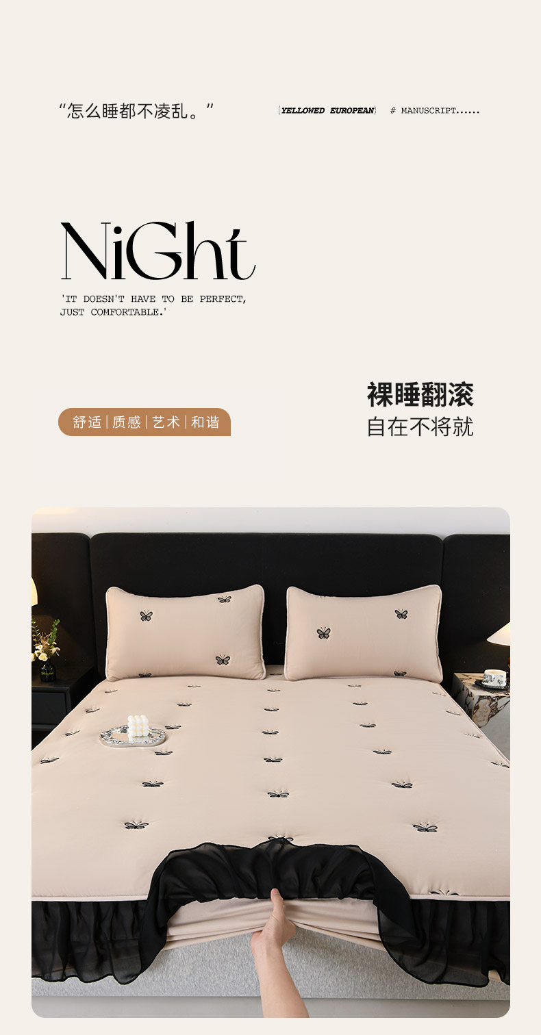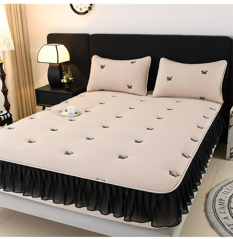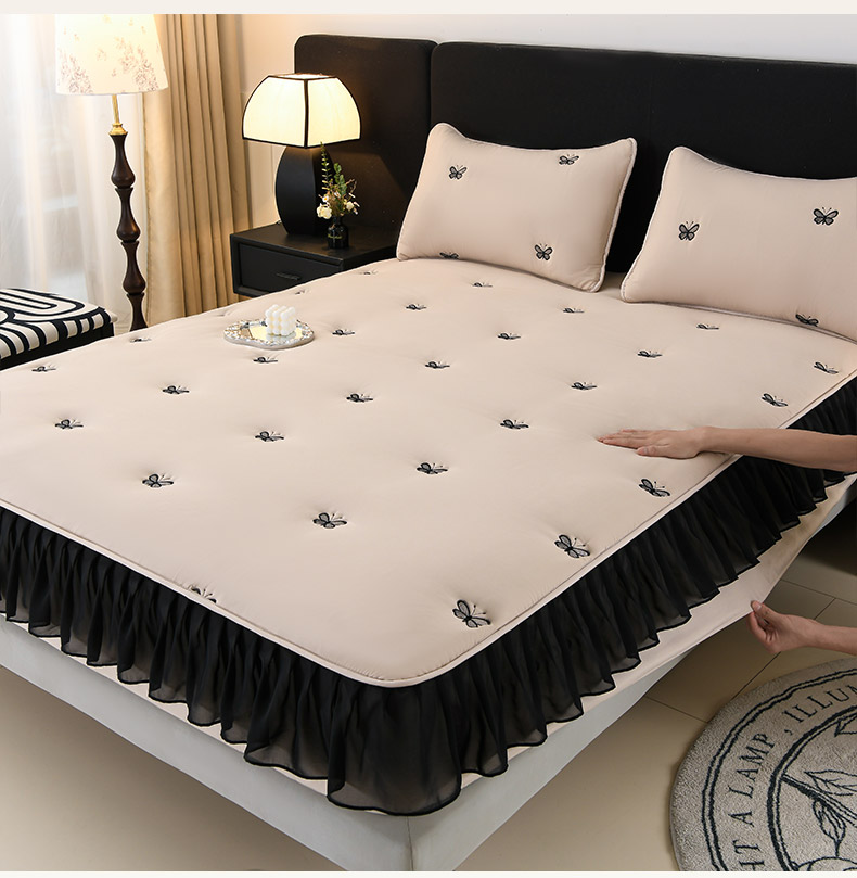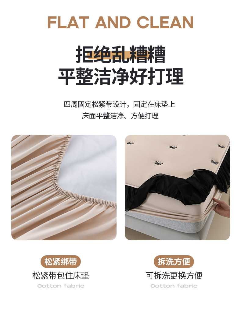 商品名称:推推家纺 2025新款A类水洗棉花边床笠单品床笠床笠单件 蝴蝶-卡其