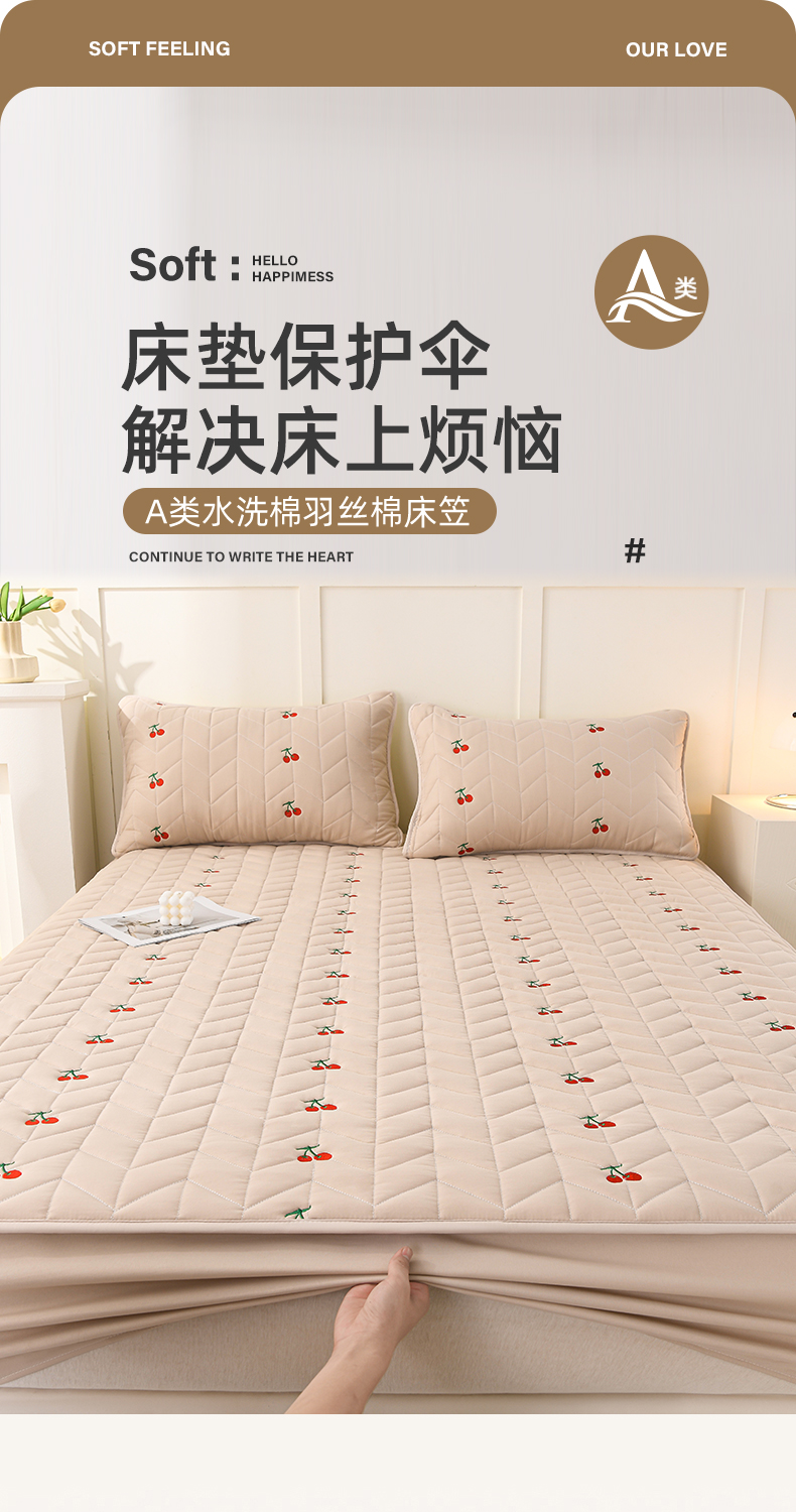 • 91家纺网 家纺一手货源 找家纺 推推家纺 2025新款A类水洗棉床笠单品床笠床笠单件 樱桃-卡其