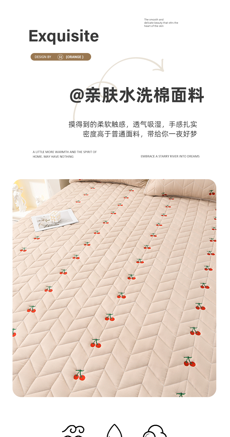 推推家纺 2025新款A类水洗棉床笠单品床笠床笠单件 樱桃-卡其