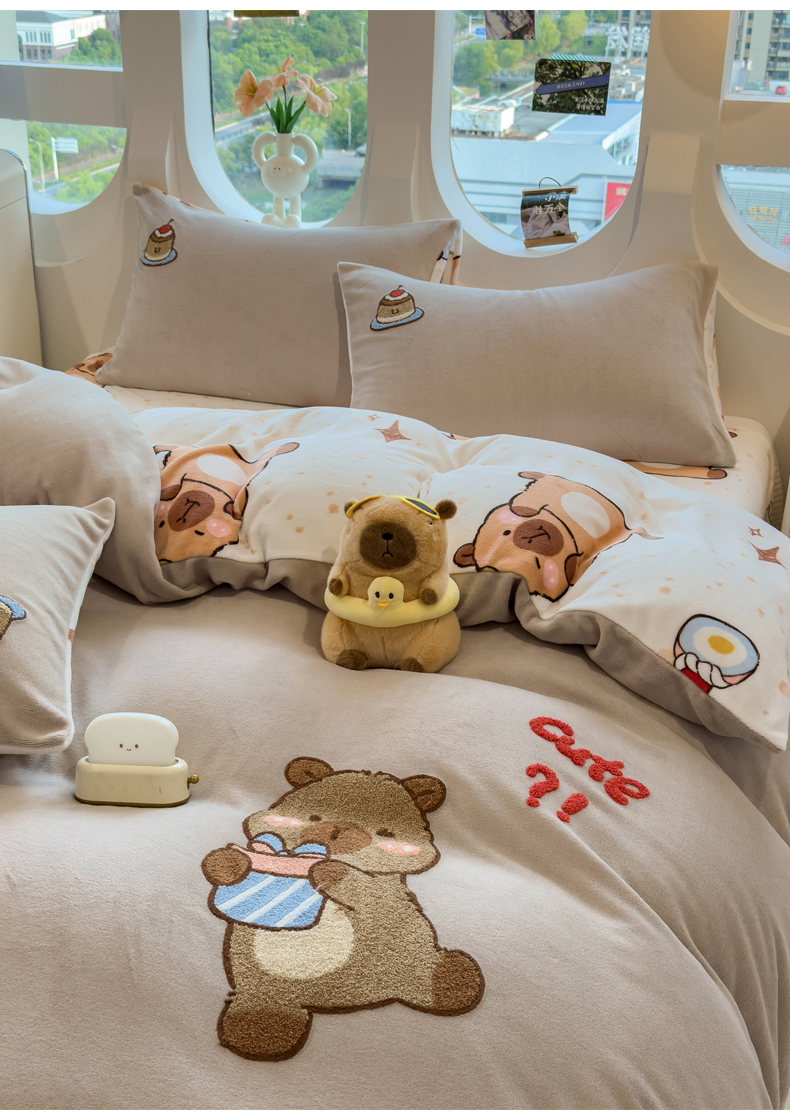 当前位置: 91家纺网 > 商品网购 > 床品套件 > 四件套 > 牛奶绒四件套 > 丝羽坊 2025新款A类潮款加厚牛奶绒四件套 抱抱熊