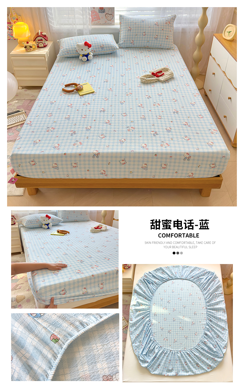 (总)梦庭帛美 2025新款高克重110克云感提花皱皱纱正版三丽鸥床笠,甜蜜电话-粉,条纹KT,童趣美乐蒂,彩绘小奶猫,木马美乐蒂,时尚库洛米,甜蜜电话-蓝,粉樱凯蒂,奶芙KT