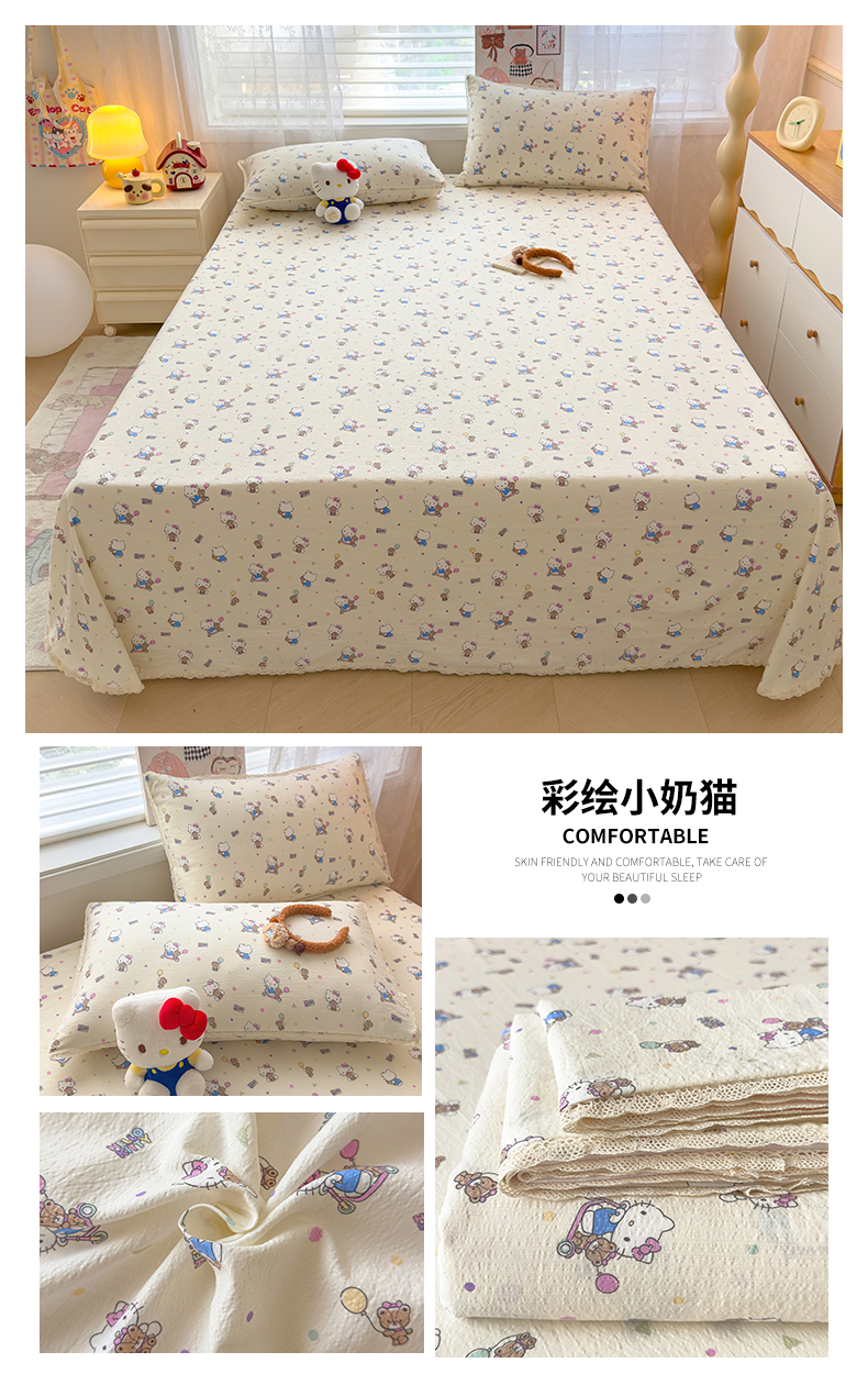 • 91家纺网 家纺一手货源 找家纺 (总)梦庭帛美 2025新款高克重110克云感提花皱皱纱正版三丽鸥床单,甜蜜电话-粉,条纹KT,童趣美乐蒂,彩绘小奶猫,木马美乐蒂,时尚库洛米,甜蜜电话-蓝,粉樱凯蒂,奶芙KT