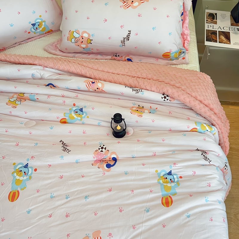 (总)兜米家居 2025新品秋冬母婴针织豆豆绒被纯手工包边卡通立体豆豆绒保暖被子被芯,滑板恐龙,巴拉小熊,花海,花花兔,花小象,幻境,可爱兔子,拉兔兔,兰花小狮子,萌宠小狗,喵喵,小碎花