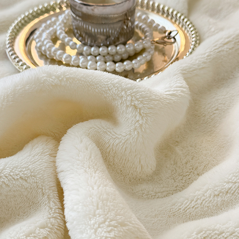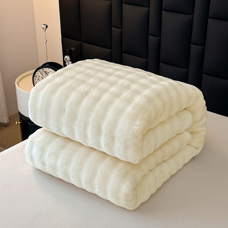 商品名称:安琪家纺 2025新款300G炫彩水墨画仿兔毛绒大泡泡绒印花法兰绒毛毯大理石纹休闲毯沙发盖毯跨境外贸出口专供 泡泡纯色-米白