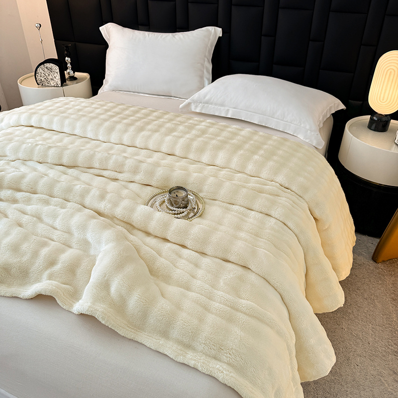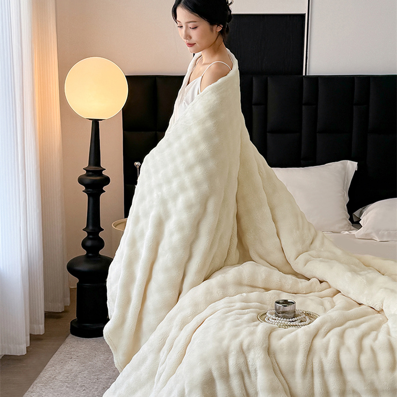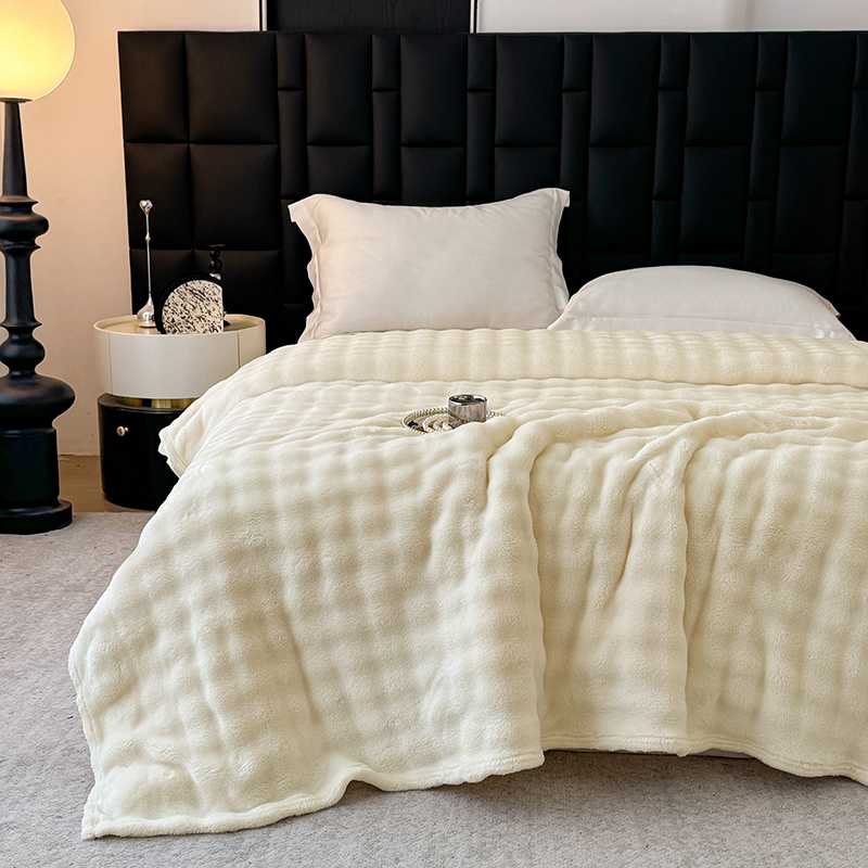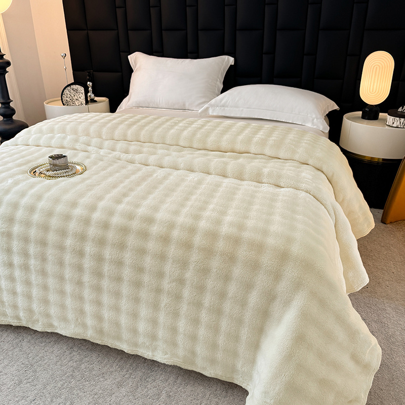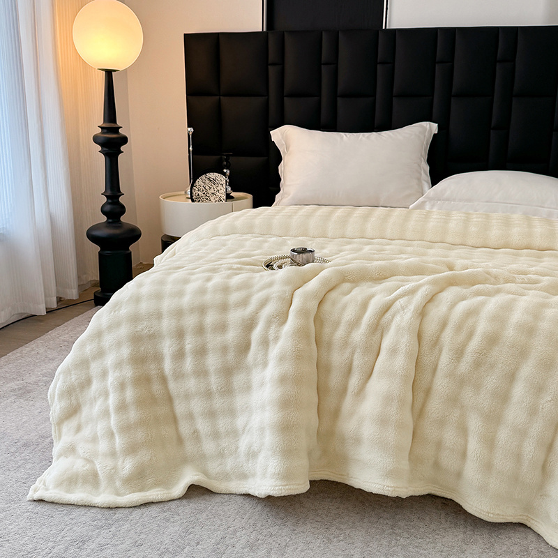 安琪家纺 2025新款300G炫彩水墨画仿兔毛绒大泡泡绒印花法兰绒毛毯大理石纹休闲毯沙发盖毯跨境外贸出口专供 泡泡纯色-米白,泡泡纯色-米白